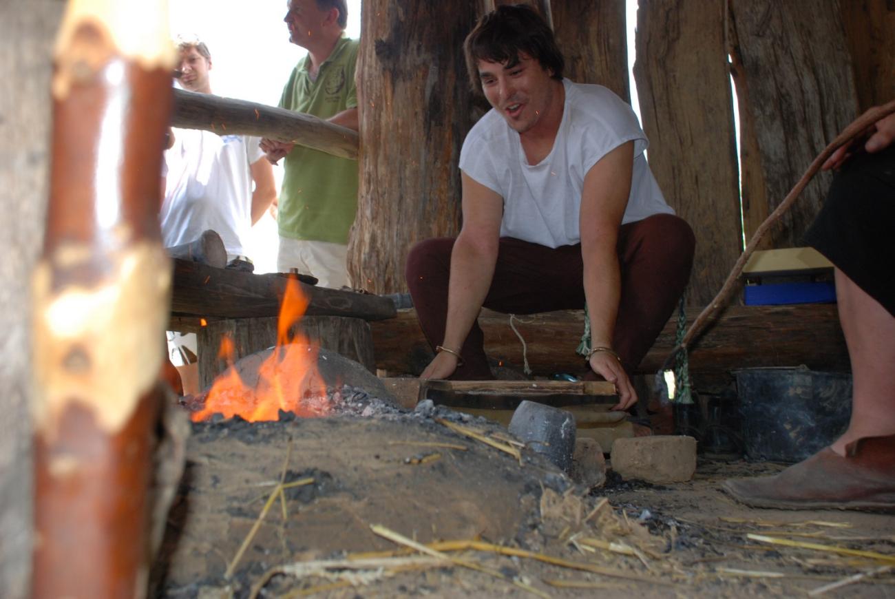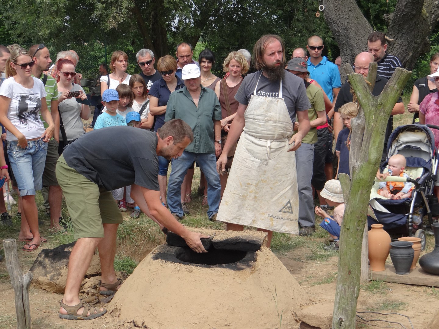 July: Celtic Crafts is one of the most visited events. The topic contains iron smelting (See Figure 14), bronze casting, pottery firing (See Figure 15) and also making flour with a rotary quern. The atmosphere is complemented by a theatre programme about Celtic warfare. The children can mint a coin.