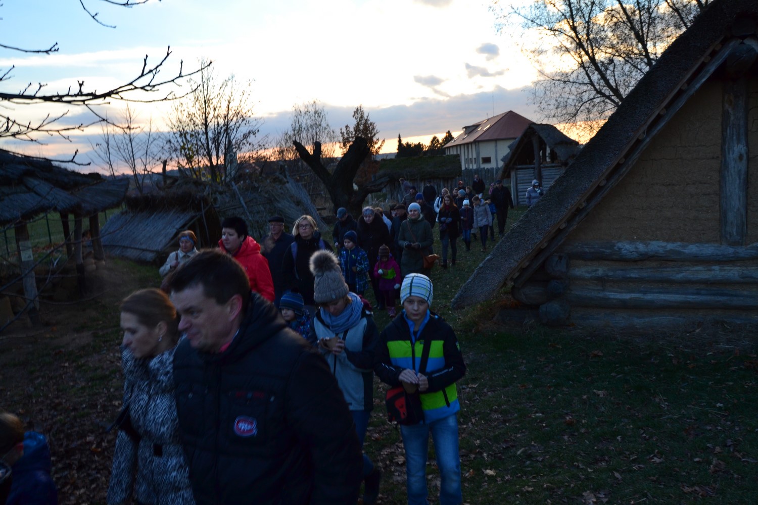 November: The All Soul’s Remembrance of Ancestors is reminded by a programme featuring the Aeneolithic. Visitors get to take part in a ceremony around an ’ancestral’ grave (See Figure 17). The workshop stalls represent some of the injuries and illnesses of the era, smithing of the first copper objects, herbal infusions, and creation of rock art from the Alpine regions. Children can make masks and immediately use them during the ceremony.