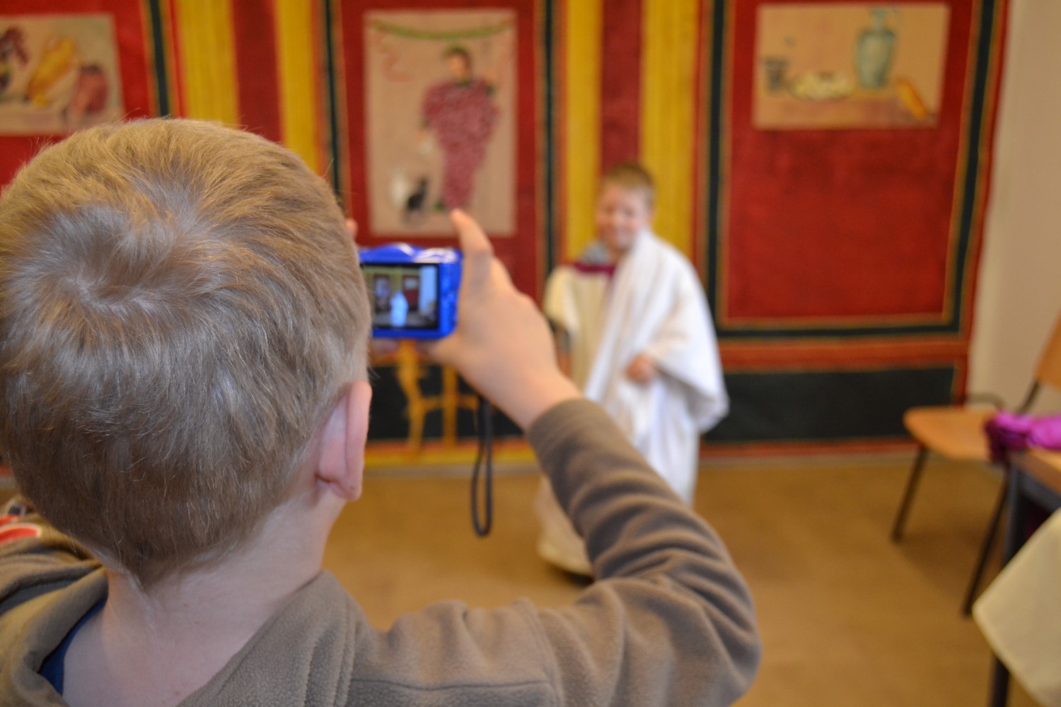 March: Classical World, which was present in the Czech Republic in Moravia. This topic again has no support from the open-air part of the archaeopark. The children’s workshop is set up as the interior of a Roman villa (See Figure 11). Hands-on activities are represented by making of a mosaic tile and Samian Ware. Visitors always enjoy tasting baked goods and wine. The children can also try on Roman clothes.