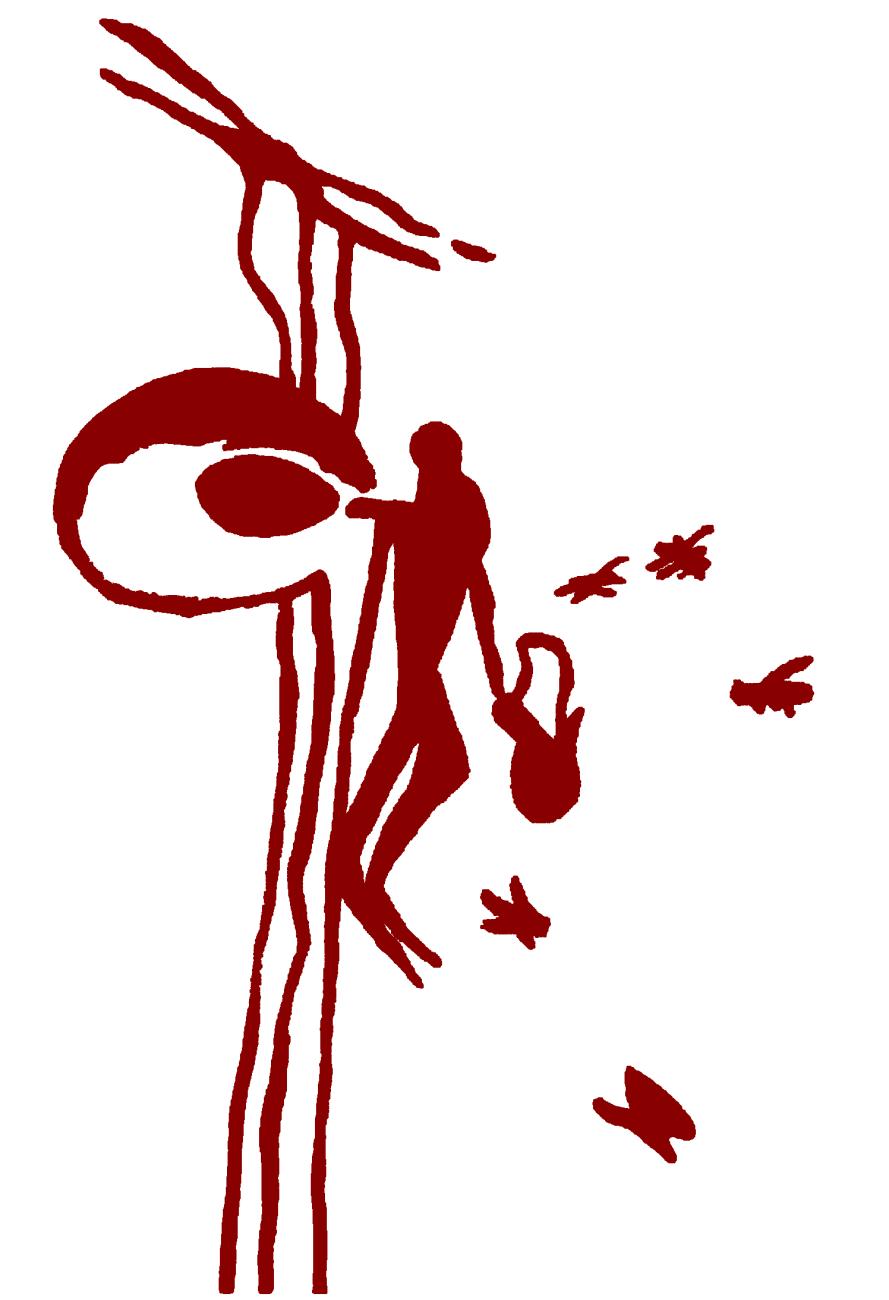 Spanish Mesolithic rock art, dating circa 9000 BC, depicts imagery of the so-called honey hunting. The best known petroglyph depicting beekeeping was found in the Cuevas de la Arana (Arana Caves), located in the municipality of Bicorp in Valencia, Spain. The western or European honey bee (Apis mellifera ) is a troglobiont (an animal that has a cave dwelling mode of life) and their hives have been found in both rock clefts and wood. It is likely that the imagery carved at Cuevas de la Arana illustrates beehives in small rock cavities rather than in trees. Although the actual knowledge about beekeeping for this period is quite limited, we can see that prehistoric people gathered honey from caves, taking with them some kind of bag (made of leather or bark perhaps?) into the caves to collect the honeycombs (Crane 2001, 19-24). In order to enter the caves they had to climb some kind of ladder and sometimes even a group of people were involved in the process.