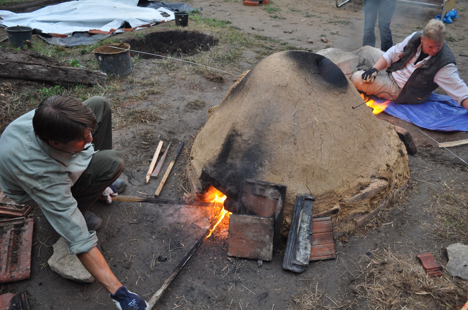 In 2014 the rest of the dome of the kiln was pulled down, the foundation wall was strengthened, both the foundation wall and the arch of the fire chamber were newly daubed and a new dome was constructed. This time, clay from the former brickworks in Luka nad Jihlavou was used for daubing the wicker construction of the dome. While building the new kiln, the fire chamber was lengthened and the flue moved further to the back part of the firing chamber. Firing in this kiln concentrated on smoke-fired pottery. The making and use of this pottery is documented from at least the end of the 14th century to the beginning of the 20th century. There were three firings carried out in the kiln, each measured with three sensors – at the front, middle and back of the firing chamber.