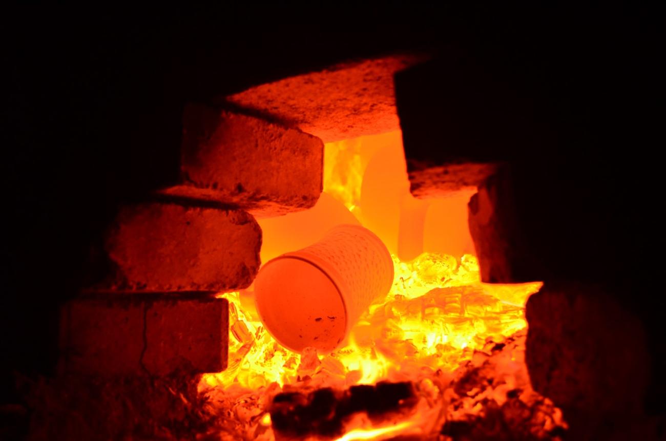 In 2015 a kiln, based on ethnographic models used for firing smoke-fired pottery (See Figure 7), was built. In this kiln, two firings were carried out. Pottery was fired at 800°C. During the first firing, fresh elder branches with leaves were used to smoke the pottery, and beechwood was used for the second (See Figure 8). The elder branches failed to create a quality smoked surface of the pots, while the beech wood produced black pottery with a metallic glossy surface.