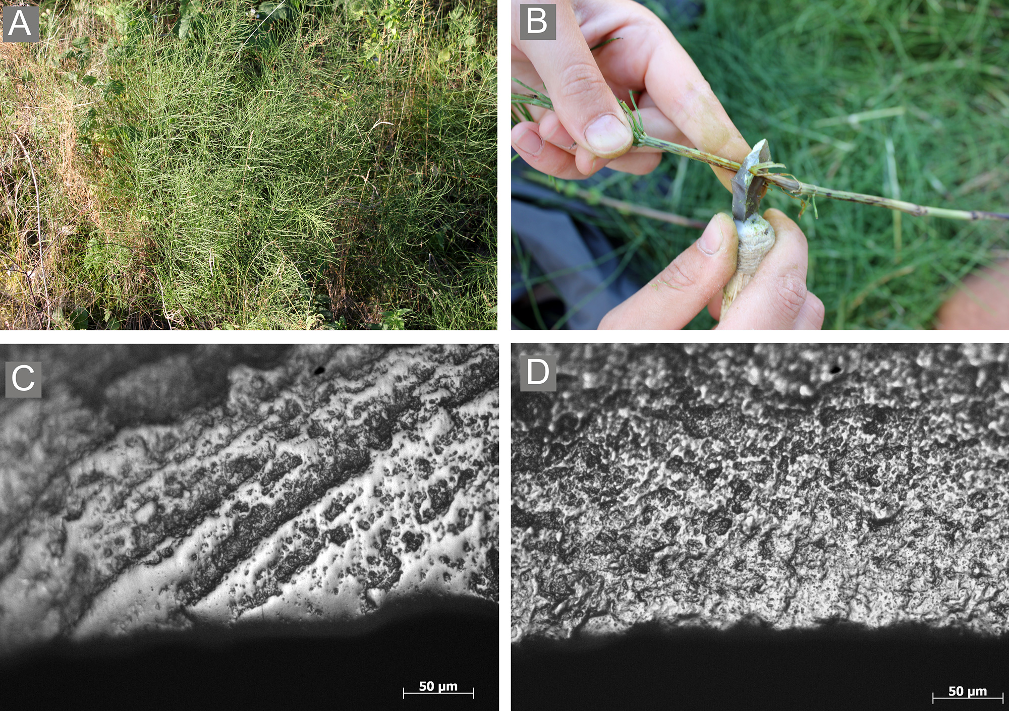 Among experiments carried out by SEPA, one can also find research oriented towards the identification and interpretation of differences and similarities in use-wear traces occurring on flint tools used in the processing of various types of silica plants (See Figure 3). The latest experimental works on this subject are devoted to the so-called curved knives, a group of functional tools made using flint blades and flakes of naturally concave edges, characterised by a very specific and complex set of use-wear traces (Juel Jensen, 1994, 65-67). Tools of this type occur mainly in the materials dated to the Late Mesolithic and the Early Neolithic associated with the Kongemose and the Ertebølle cultures (van Gijn, 1989, 85, 144; 2010, 65; Juel Jensen, 1994, 53, 65, 76). The function of curved knives has not been precisely determined so far, however, it is believed that they should be associated with splitting of plants containing large amounts of silica (Vaughan and Bocquet, 1987, 402; Juel Jensen, 1994, 67; van Gijn, 2010, 66). Plant fibres obtained this way might have been used in the production of ropes or fabrics.