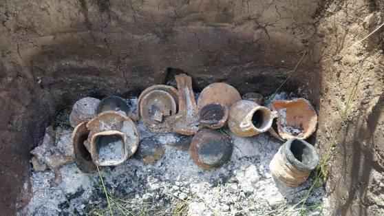 Upon examining the cooled pottery the next day I was pleased to confirm that none of the vessels had cracked or exploded during firing. Additionally, the pieces had fired, if not completely through, then most of the way through despite the shortened firing time. The fired pots are noticeably brittle and not completely water tight, but with a little more practice we could probably produce vessels that would be more serviceable. Since we accomplished our goal of using only raw materials from site and an open fire to create prehistory-inspired pottery—and we had fun doing it—we called this experiment a success!