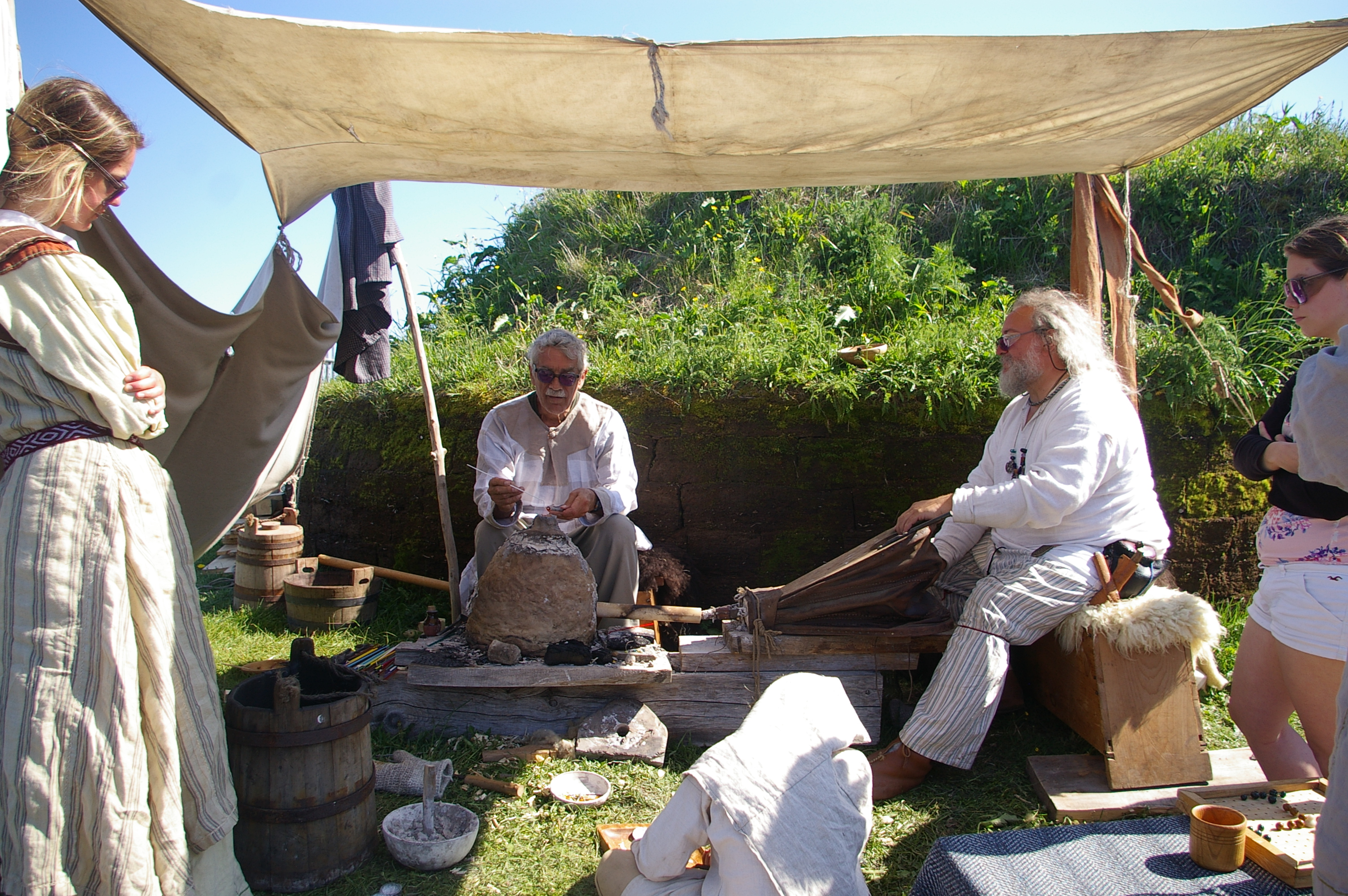 To celebrate Canada’s 150th anniversary and the 20th anniversary of the historical interpretation program at L’Anse aux Meadows, NHSC, Parks Canada invested to extend their regular staff with a 10 day special program. Darrell Markewitz, the designer of the original program, and the Dark Ages Recreation Company (DARC) returned once again to this UNESCO World Heritage site to interact with the staff and public and mount displays of various craft activities.