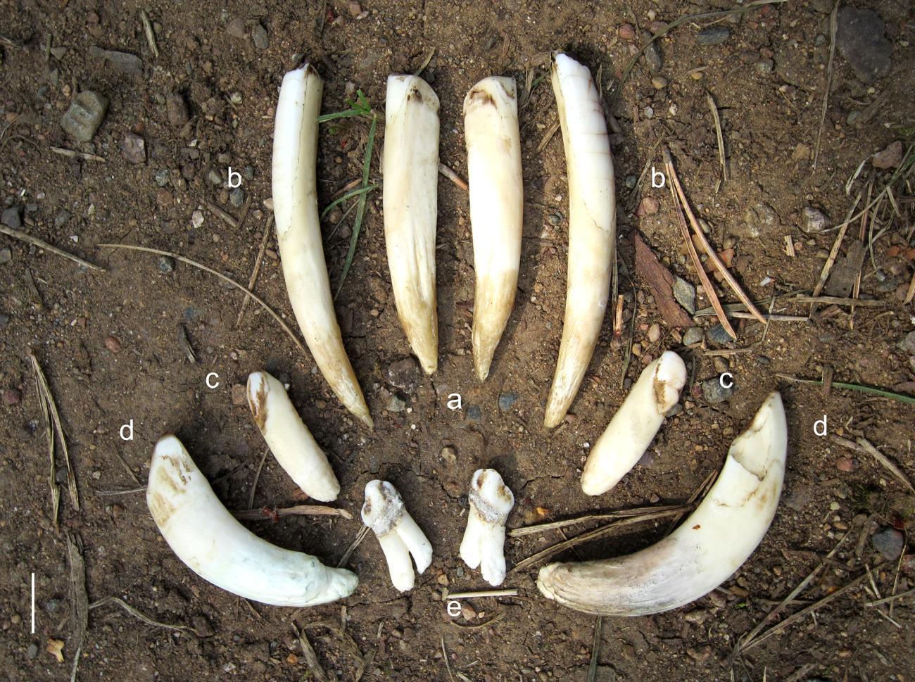 A major reason for choosing the Skateholm tooth ornament for reconstruction was the fact that it contained 32 wild boar teeth. This was a reasonable number of specimens and a suitable species from the perspective of implementation. However, full osteological analysis of this ornament has not been published. Of the 23 teeth that Persson and Persson analysed (1984, p.16), 19 were incisors I1 and I2 and four were canines. All analysed teeth originated from the lower jaw. Equal proportions of incisors I1 to I2, and of incisors sinister to dexter, suggest that all four incisors from the tip of the wild boar jaw were used for this ornament. In the Mesolithic, these straight and long incisors were often turned into pendants (cf. Burenhult, 2002; Zagorskis, 2004, p.58). Furthermore, a total of six specimens of incisor I1 dexter indicates that the raw material was extracted from at least six animals. A pair of identical and similarly worn canines obviously originated from the same individual. The absence of sex determinations in Perssons’ analysis is unfortunate, because female and male canines of wild boar are very dissimilar in size. While the male canines grow into huge 10–12-cm-long tusks, the female canines are more proportional to the incisors I1 and I2, that is, 5–7 cm long.
