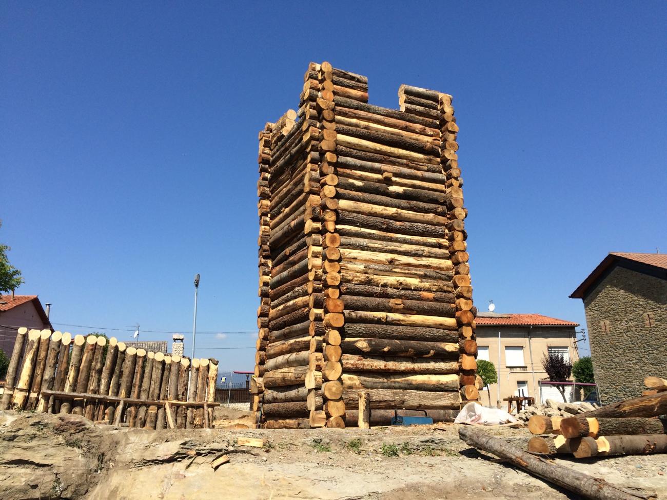 During fifteen days of June 2015, the team of l’Esquerda worked in a research project to build a Carolingian wooden watchtower on the River Ter, in Roda de Ter, Catalonia, Spain (This Research Project was approved and granted by the Spanish Ministry of Culture (DGICYT, HAR2012-36497) for three years 2013-2015.). The idea was to test our hypotheses experimentally, (a) if the wooden watchtower could be built without any metal nail, (b) how it worked, and (c) its resilience.