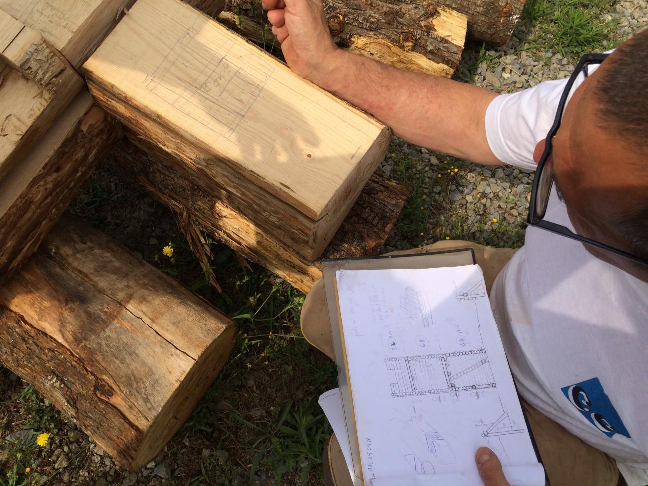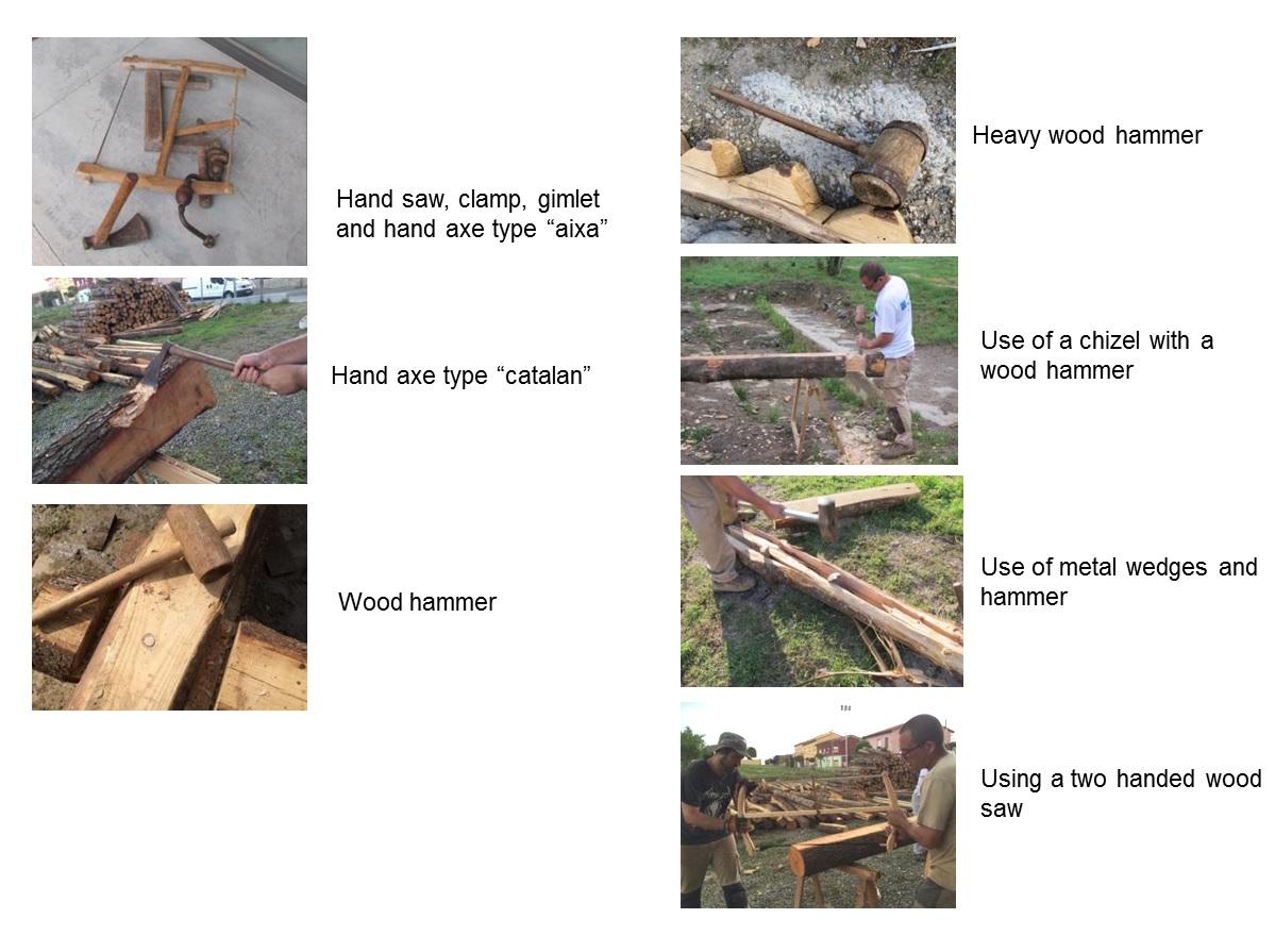 The construction was built by a team of four people, using traditional tools such as a hand saw, clamp, gimlet, Catalan type axe, wood hammer, chisel, two-handed wood saw, heavy wood hammer and metal wedges.