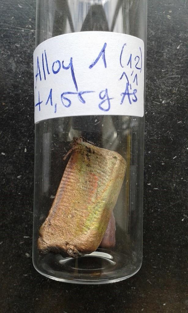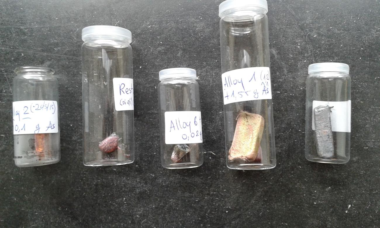 Four arsenical copper alloys were produced in the laboratories of Deutsches-Bergbau Museum (DBM) in Bochum (Germany), who also provided ICP-OES and SEM testing of the results.