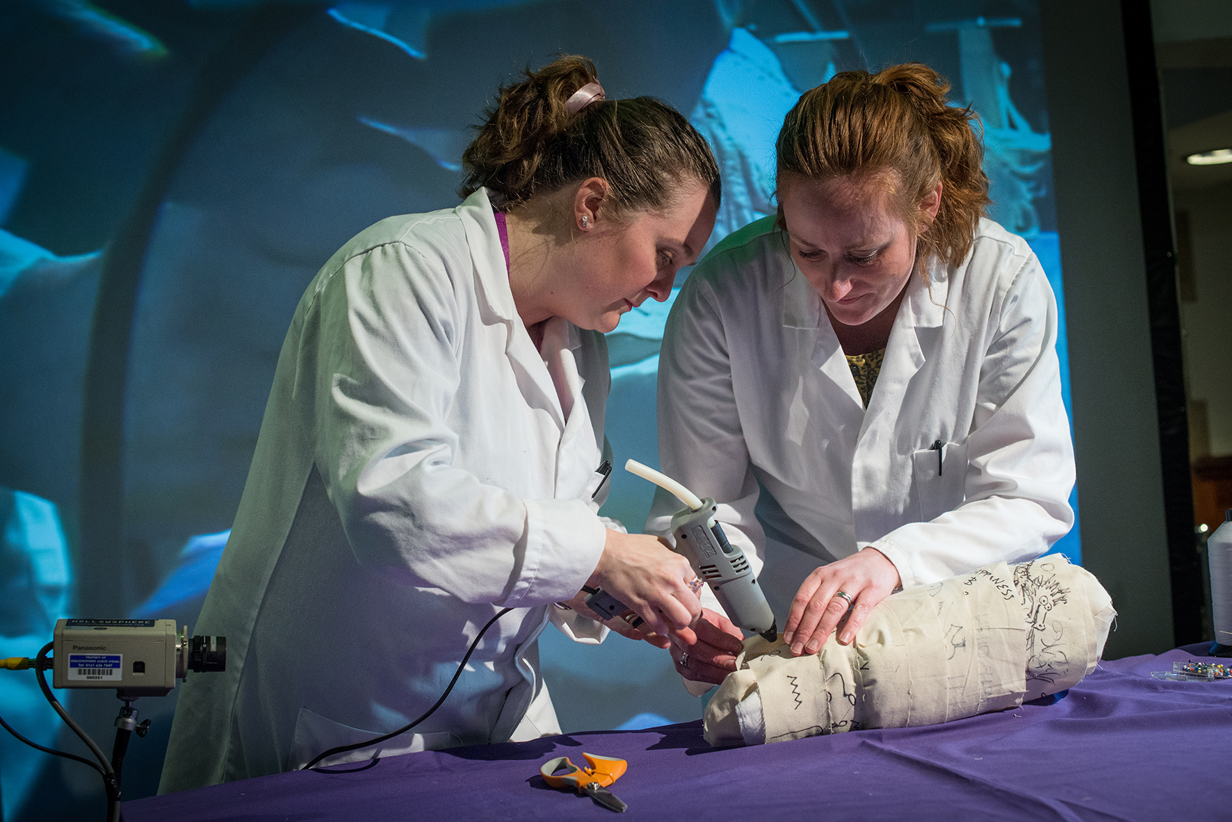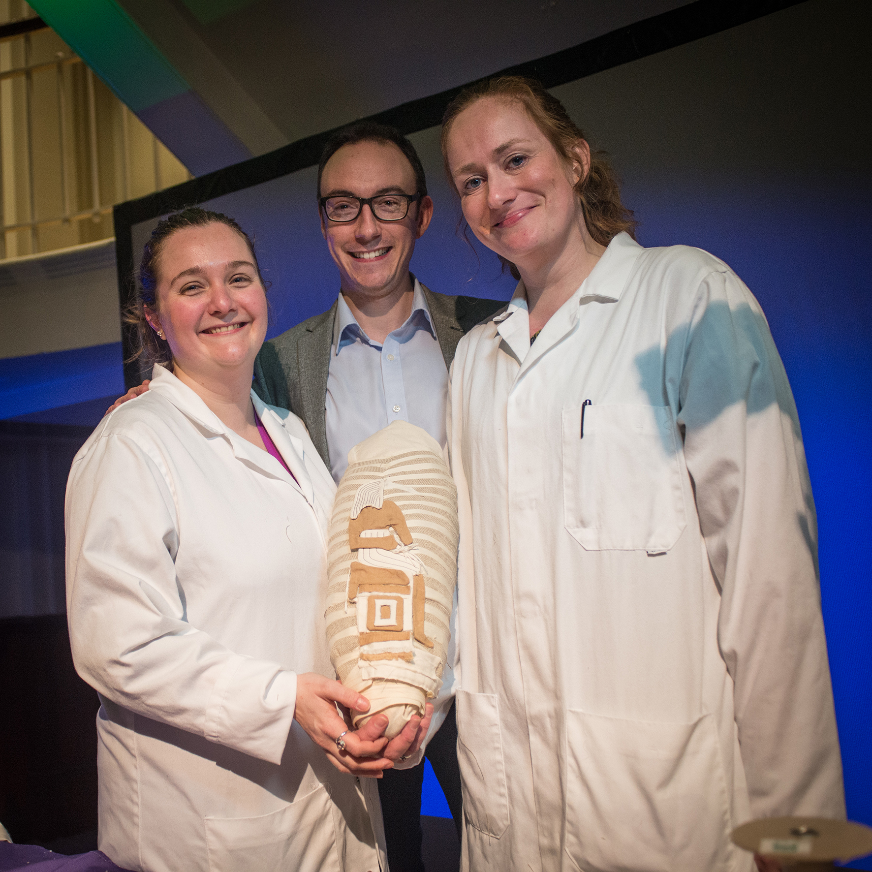 The experimental ‘Mummy Re-Rolling’ event was held at Manchester Museum to coincide with the exhibition ‘Gifts for the Gods: Animal mummies in ancient Egypt’ and the 40th anniversary of the unwrapping of Mummy 1770. The event had multiple objectives; to encourage visitors into the museum, to drive engagement with the themes of the exhibition, to challenge historic perceptions of the ethics of archaeology and museology, and to showcase scientific research into the practice of animal mummification.