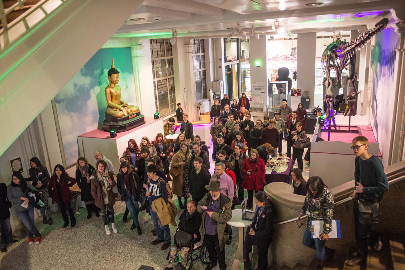 The event took place in February 2016 in the main foyer of Manchester Museum before an assembled crowd of over 300 people (See Fig. 9). In a scene reminiscent of the Victorian unrolling parties, guests were invited to enjoy a drink whilst the event unfolded on an elevated stage before them, harking back to the social aspect of the earlier events. The event was live-streamed via the Periscope.tv app to a further 900 viewers. Live updates were provided throughout the evening on the museum’s social media platform using the #AnimalMummies hashtag which stimulated an interactive experience.