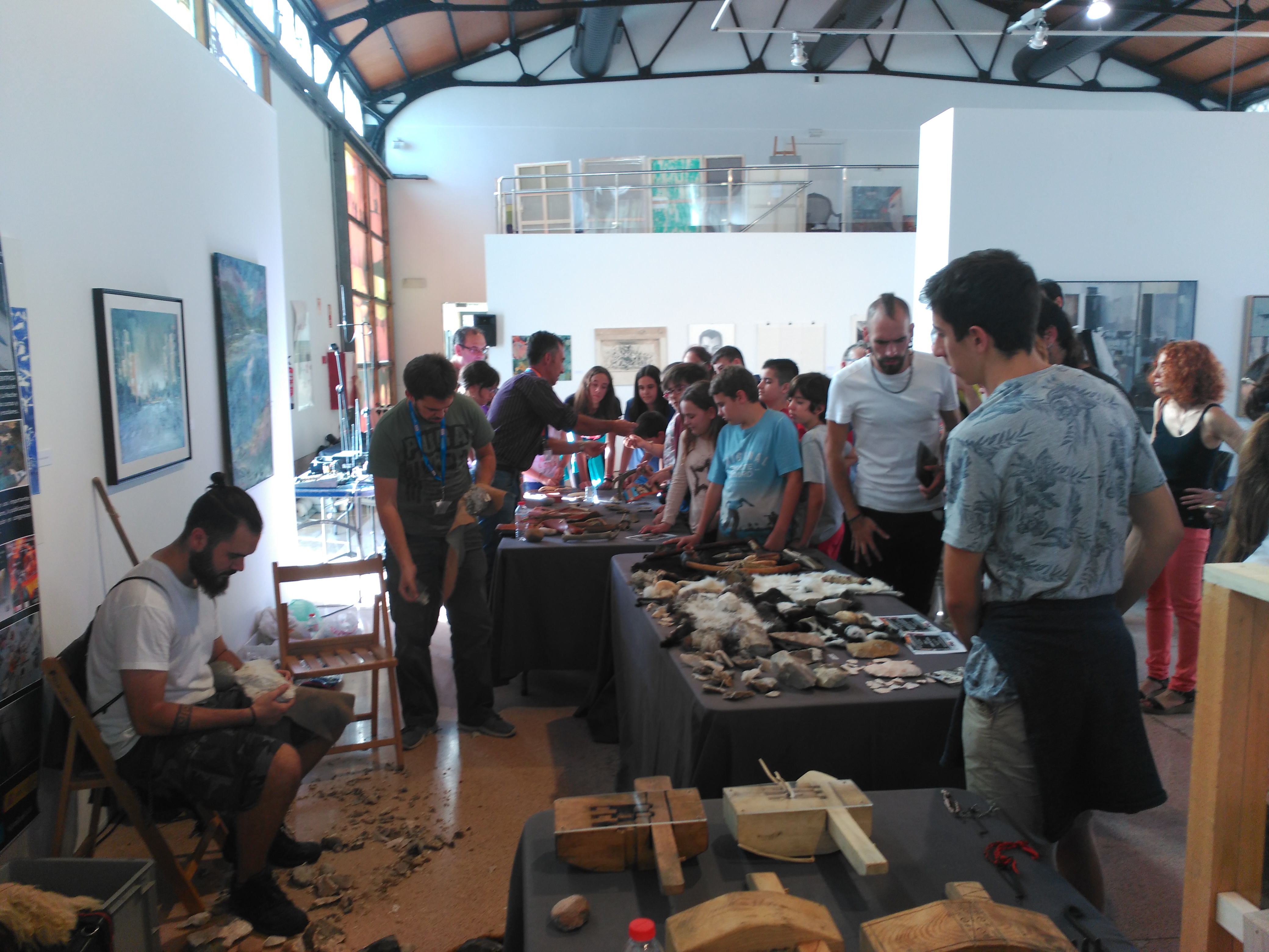 Several workshops and practical activities were arranged for the last day of the Congress. They included handmade work with palm leaves Prehistoric lithic knapping, works with tendons, hide and several vegetables fibres, the production of Magdalenian bullroarers, the perforation of red dear antler and wood working, the use of bows, the use of airbrushes for rock art, the functioning of Iberian iron locks, and the development of a Roman Republican military march. The activities were held in a hangar at the Port of Tarragona. During the morning, the practical demonstrations were an opportunity for participants in the Congress to discuss scientific issues, methodological protocols, and to share their personal experiences. Antoni Palomo, from the Museu d’Arqueologia de Catalunya, concluded the morning session with a talk about the long tradition of experimental stone tool knapping in Spain. During the afternoon, workshops were opened to the general public.