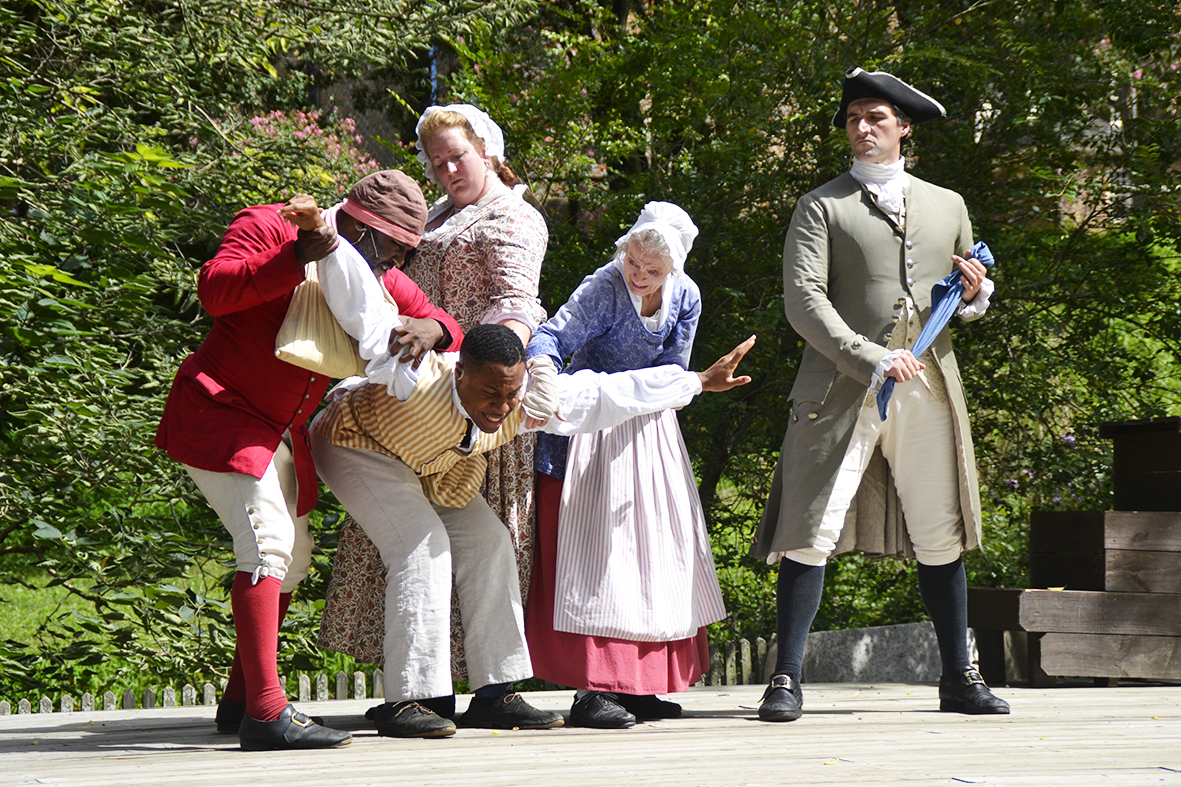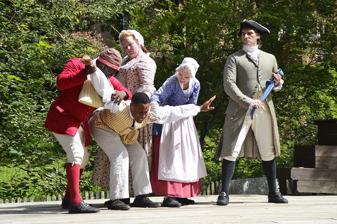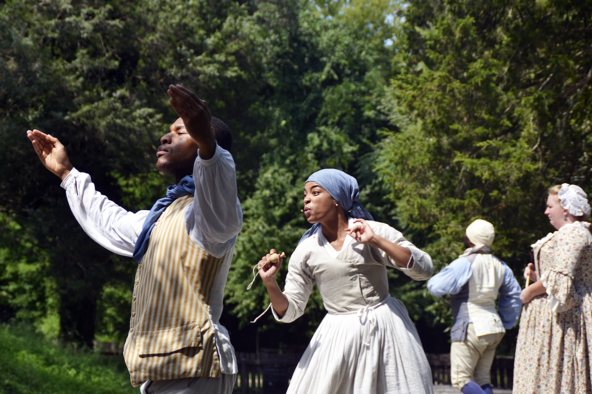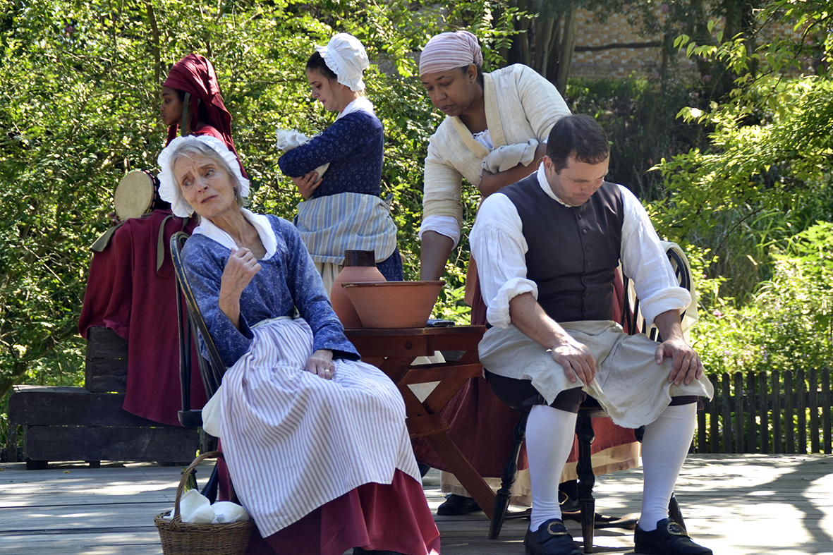 Speaking of devised theatre, multi-vocality and democratic relations between interpreters themselves, and interpreters and audience, in general between past and present values, it is necessary to mention Journey to redemption performance. I cannot separate clearly whether the show is connected more with theatre or heritage. “Redemption” is not a formal theatre performance, and there is no classical script either. It is not about acting, yet it is all about it. It is actually difficult to explain what “Redemption” is, in sense of performance as much as it is difficult to explain the concept and proportions of the process that we name redemption in a real life. Quite interactively demanding (for and between actors on the stage) “Redemption” brings fantastic rhythm through choreography, dialogues and body language. Due to the flow of parallel narratives and their interweaving, there isn’t much time for thinking during the play – you have to give yourself over to the performance. The emotional and mental accents are perfectly positioned and hit the audience in the right moments. Also, maybe, the most important: six actors build twelve characters – six historical and six real: themselves. So, these are biographies as much as autobiographies, histories as well as confessions. Conversions from “self” as a character to self as a real person (also played) are so subtle that chronologies become intertwined. The past becomes relevant as much as contemporaneity and values and meanings are not lost in the way. Journey to redemption is a drama play and art-performance, theatre and reality, the act of authorship and participation. It also represents, it seems to me, Colonial Williamsburg on its qualitative peak in this moment – crossing the line (final statement of the show itself) and limits of museum performative interpretation.