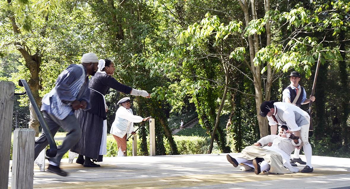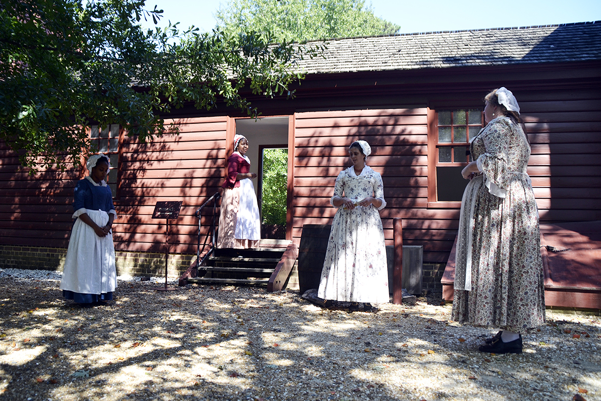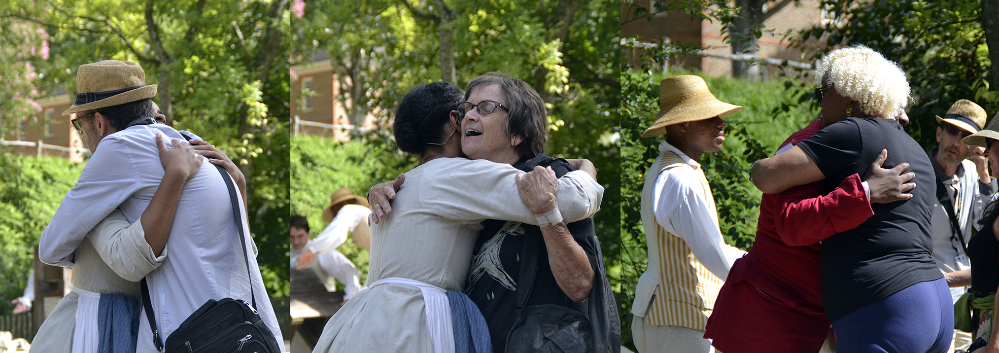 Speaking of devised theatre, multi-vocality and democratic relations between interpreters themselves, and interpreters and audience, in general between past and present values, it is necessary to mention Journey to redemption performance. I cannot separate clearly whether the show is connected more with theatre or heritage. “Redemption” is not a formal theatre performance, and there is no classical script either. It is not about acting, yet it is all about it. It is actually difficult to explain what “Redemption” is, in sense of performance as much as it is difficult to explain the concept and proportions of the process that we name redemption in a real life. Quite interactively demanding (for and between actors on the stage) “Redemption” brings fantastic rhythm through choreography, dialogues and body language. Due to the flow of parallel narratives and their interweaving, there isn’t much time for thinking during the play – you have to give yourself over to the performance. The emotional and mental accents are perfectly positioned and hit the audience in the right moments. Also, maybe, the most important: six actors build twelve characters – six historical and six real: themselves. So, these are biographies as much as autobiographies, histories as well as confessions. Conversions from “self” as a character to self as a real person (also played) are so subtle that chronologies become intertwined. The past becomes relevant as much as contemporaneity and values and meanings are not lost in the way. Journey to redemption is a drama play and art-performance, theatre and reality, the act of authorship and participation. It also represents, it seems to me, Colonial Williamsburg on its qualitative peak in this moment – crossing the line (final statement of the show itself) and limits of museum performative interpretation.