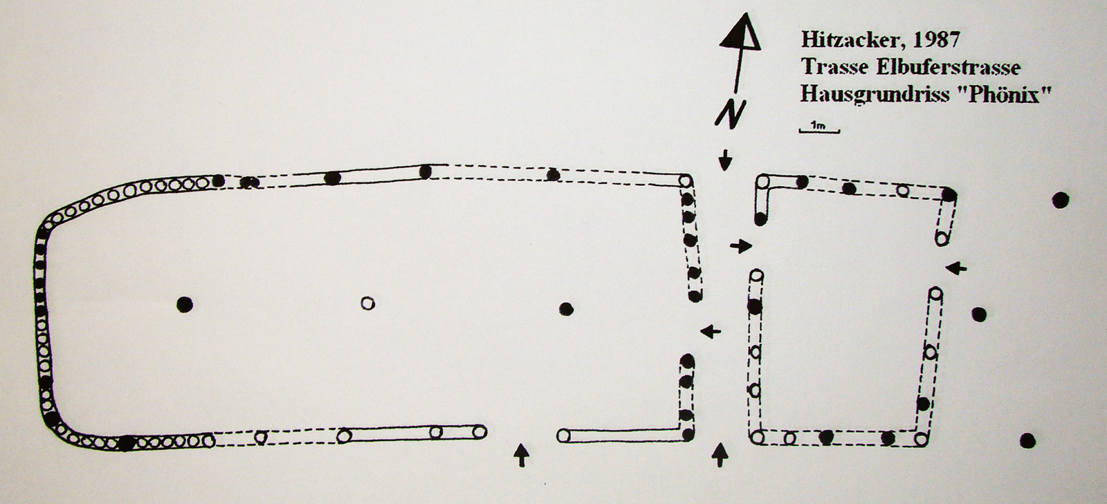 Longhouses built using earth-fast post technique belong to the most important and most successful house types of middle European prehistory. The footprints of these structures, in various styles, are identifiable from the very beginning of the Neolithic period up to the Middle Ages, and sometimes up to early modern times. The history of longhouses is closely connected with a settled, agricultural structured society. The subsistence of their inhabitants was usually based on a special form of mixed economy, whereby the cultivation of grain, vegetables and fruits played an important role along with the breeding of animals such as cows, sheep, goats, and pigs. This mixed economy insured the guaranteed survival of the farmers during troubled times such as animal epidemics and crop failures. Since the Bronze Age period, these longhouses were often used as dwelling-byres, where people and animals lived side by side with each other although the archaeological evidence is not always obvious. For researchers and archaeologists this house type is readily identifiable, because the earth-fast posts were often dug over one meter deep in the ground and therefore we can spot them in our excavations even when the original soil level of the past has already been destroyed by erosion (See Figure 1).