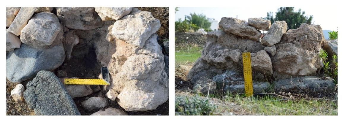 The site produced a lot of artefacts, such as pottery and stone tools that match quite accurately with the material from the necropolis and can be dated to the Early/Middle Bronze Age of Cyprus (2200/1800 BC). These dates are confirmed by the radiocarbon dates calculated by the laboratory of La Sapienza University in Rome (Calderoni, 2009).