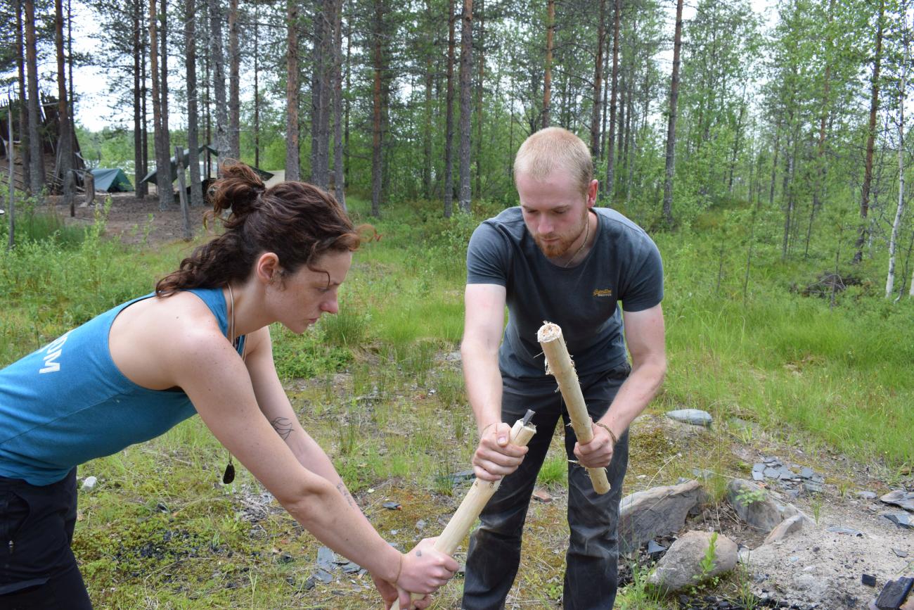 In July 2018 the Mesolithic Resource Group attended the Kierikki Stone Age Centre, Pahkalantie, Finland. The visit provided us with the opportunity to practice experimental archaeology in a ‘Stone Age’ landscape at Kierikki. One project was the reconstruction of a section of the Neolithic wooden fish weir from the site of Purkajasuo, which is on display in the museum. Constructed of pine, willow and birch bark, the section demonstrates the creative use of materials local to the area. We employed an actualistic approach, using technologies and materials available to the inhabitants of the area between 3300-2900BC. Our work demonstrated the effective use of resources by Stone Age societies and reinforced the importance and effectiveness of simple tools. For most of the project we used unmodified tools.
