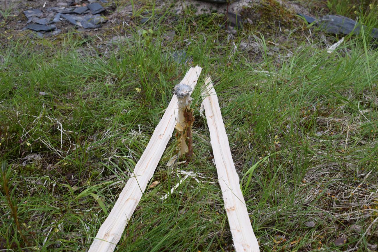 There have been several previous reconstructions of weir sections and fish traps local to Kierikki; for example, a video in the museum shows the building of a fish trap, however, metal axes are used throughout. Koivisto and Nurminen (2015) documented that in traditional fisheries which used similar lath screens, the best pine trees for the construction of the laths were found by bogs, wetlands, and coastal flats. These growing conditions produced straight, slow-growing trees with few branches. Suitable trunks were collected in winter, and taken indoors before being dried and processed (Koivisto and Nurminen. 2015). This mirrors the archaeological evidence from Purkajasuo. However, we had less time – three days in the height of summer.