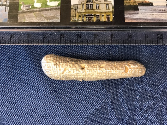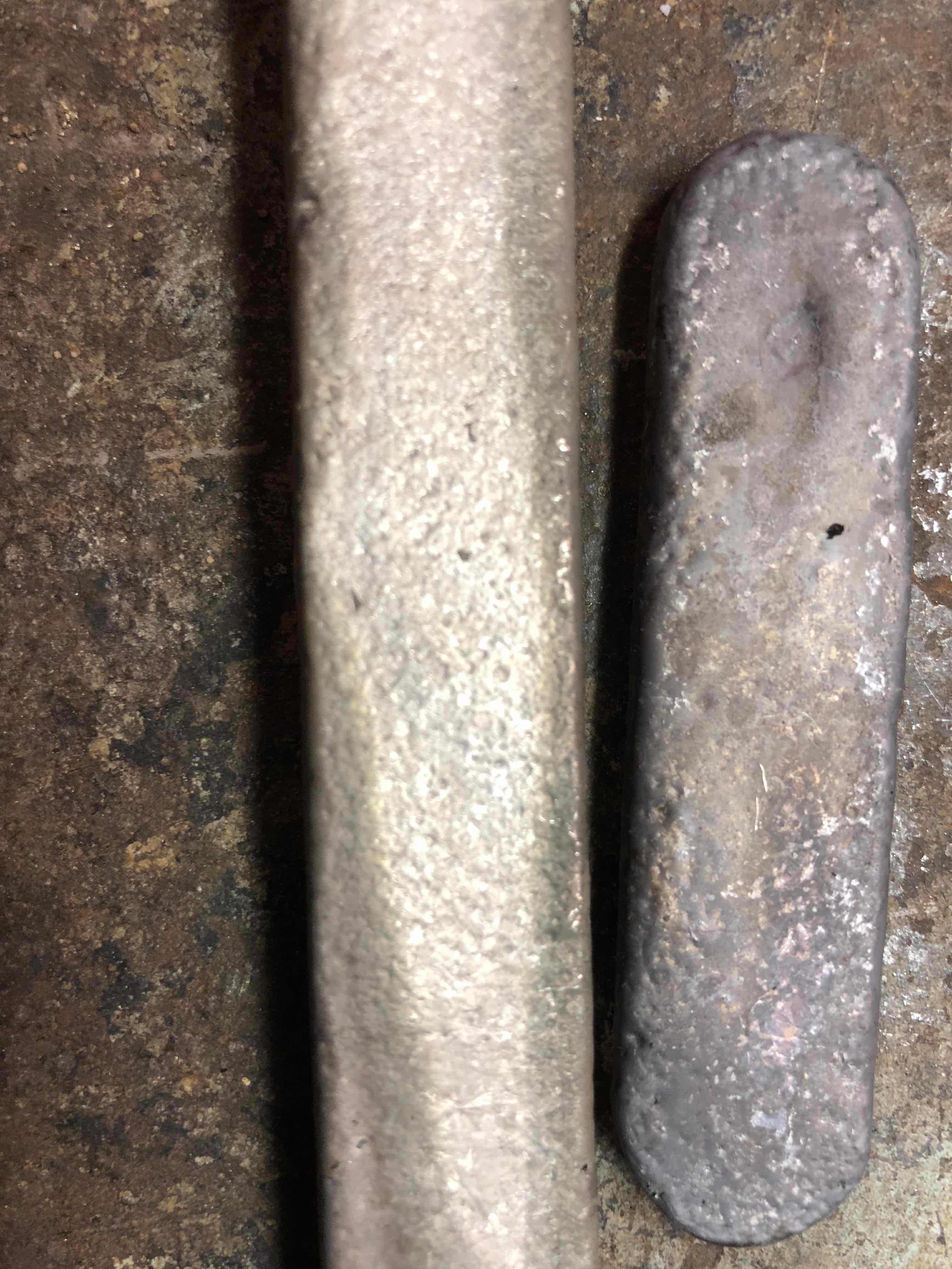 Analysis of the West Coast Cumbria hoard ingot shows that the textile pattern goes only part way around it. The ingot made in my clay and cloth mould looks quite similar. I believe the discontinuities in the ingot in Figure 1 may have been caused by charcoal getting from the fire into the crucible and ultimately into the ingot mould during the pour. I have experienced these discontinuities myself (See Figure 11).