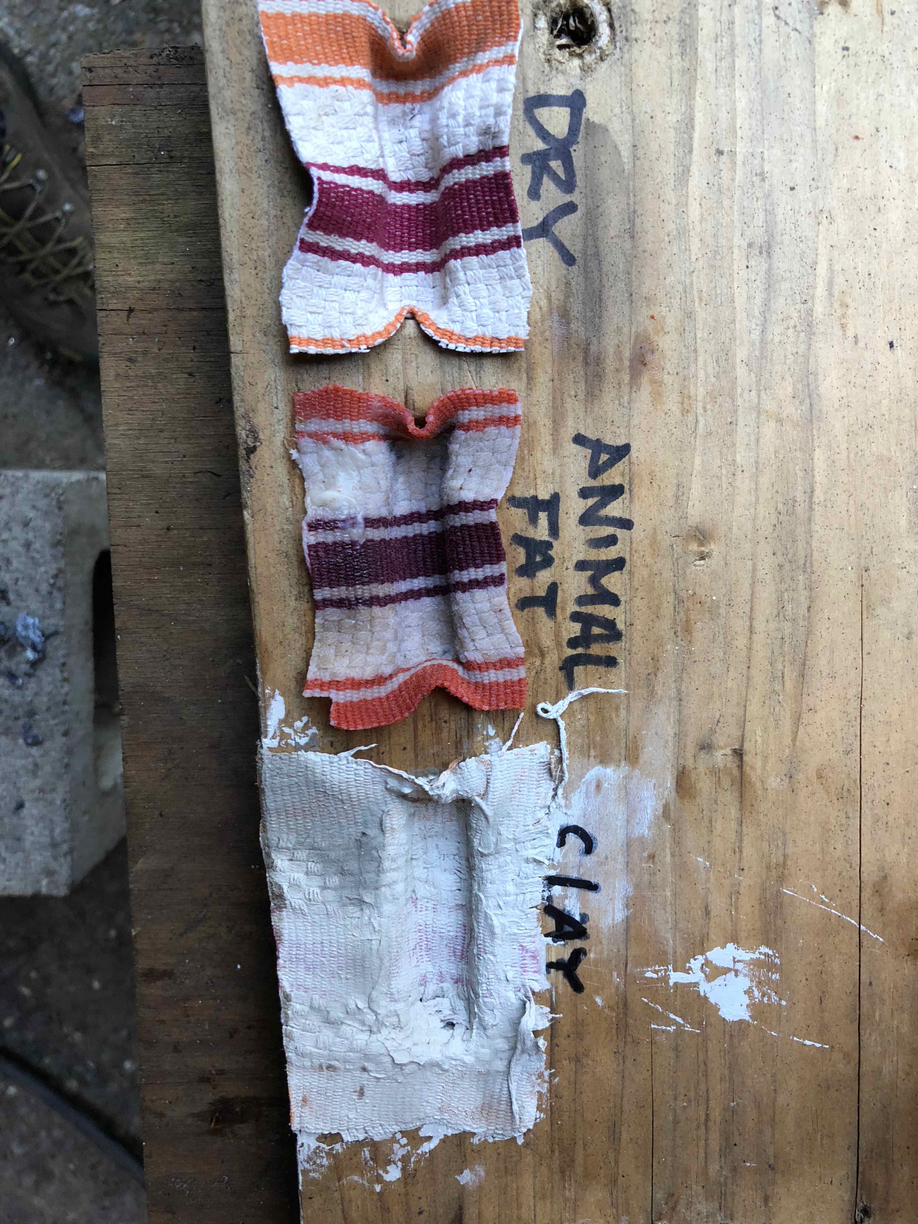 - The middle mould with the cloth saturated in animal fat is distorted in shape but has one small patch imprinted with the weave pattern (Figure 9).