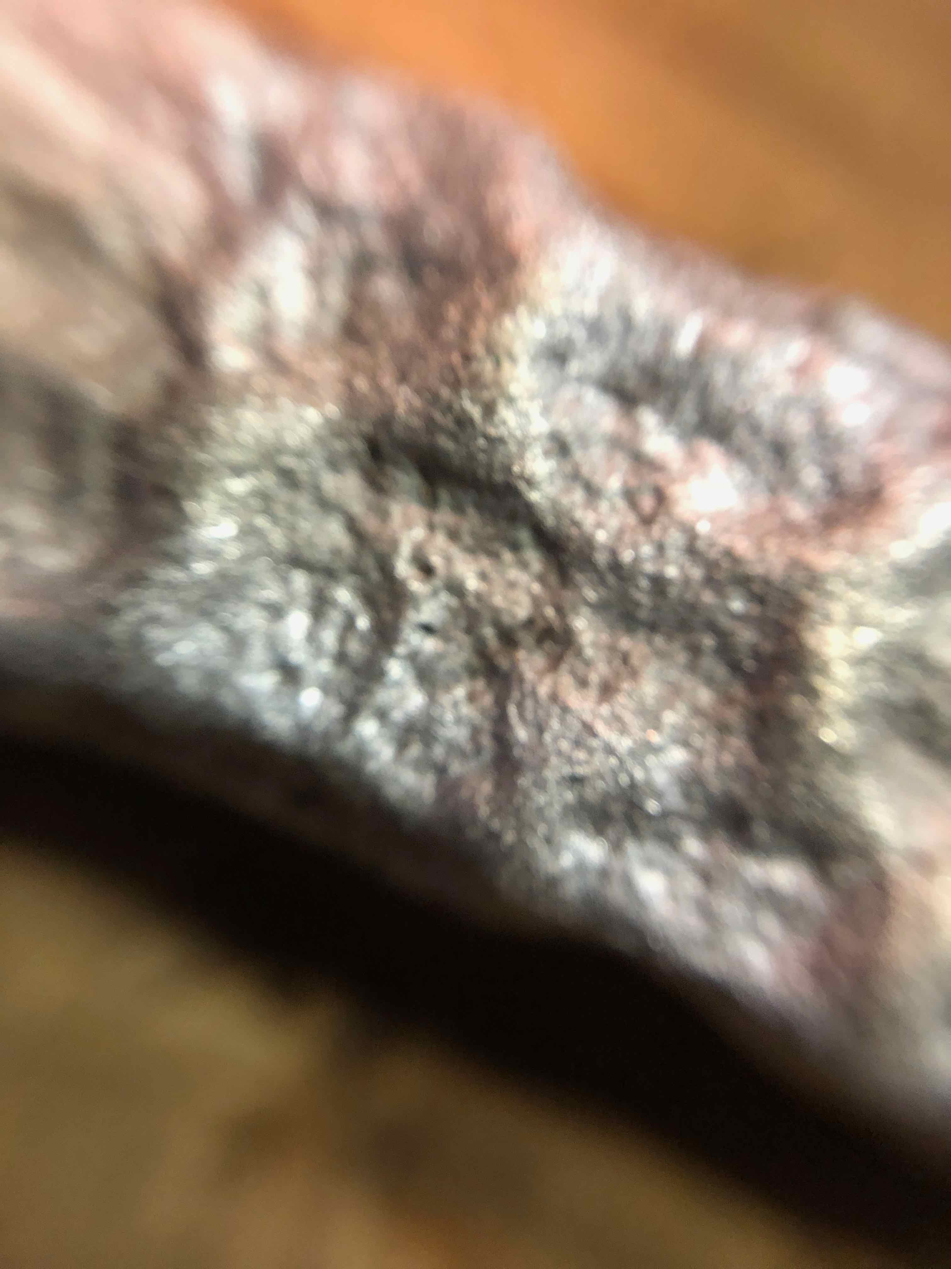 For comparison, I show the underside texture of two sterling silver ingots poured into a steel mould (See Figure 12). The ingot surface is pitted but it is otherwise smooth and not granular like the ingots poured unto the cloth and wood moulds.