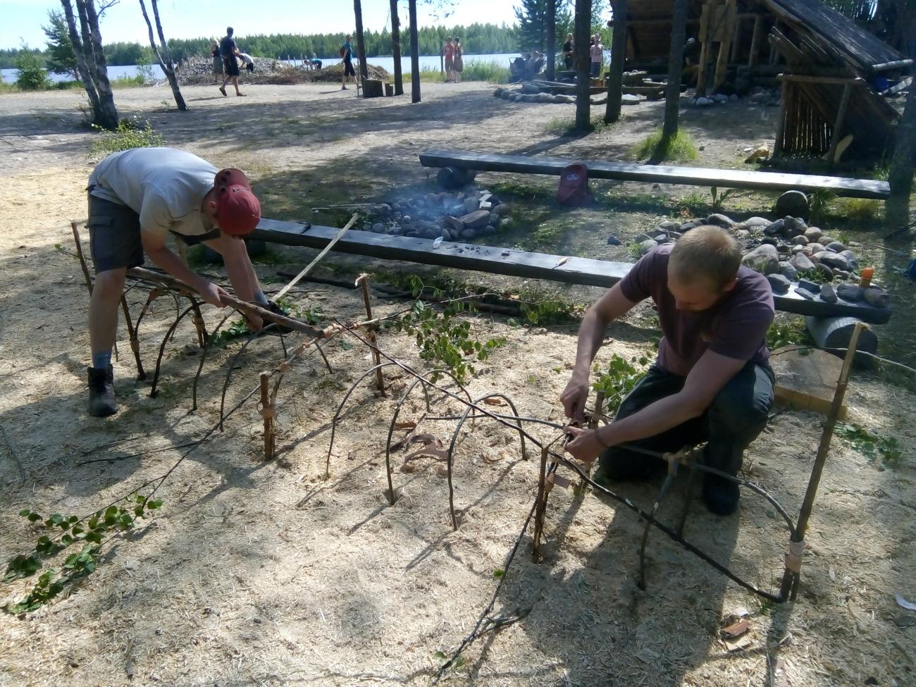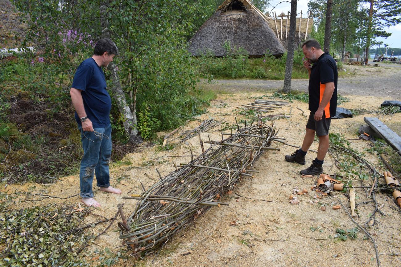 All these skills were used by group members to achieve the completion of the task. Even those who lacked skills were able to contribute Something. For example, if someone could only produce just one metre of willow cord for lashing, the whole group could still progress in their task, emphasising the productivity and community of ‘group work’. Then there is the fact that by being involved in these activities, individuals are learning and are thus active in passing on and preserving these ancient skills. Finally, by conducting these activities in a public space such as Kierikki, an individual’s confidence is increased by discovering an inner creativity and being able to communicate their creativity to members of the public.