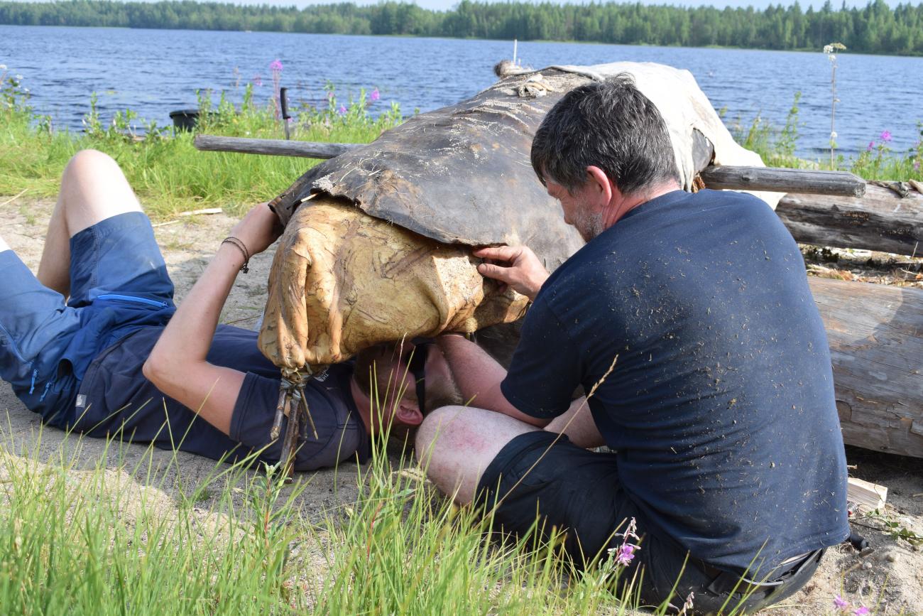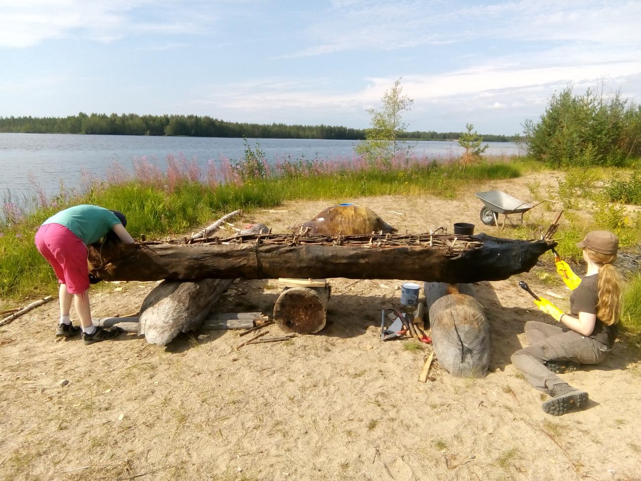 In July 2018 a group of students from the UK participating in the Placements in Environmental, Archaeological and Traditional Skills (PEATS) Erasmus + Work Placement, attended the Kierikki Stone Age Centre, Pahkalantie, Finland. Part of that training included experimental / experiential projects that were coordinated by Dr. Peter Groom of the Mesolithic Resource Group. Next to the authors also involved in the construction of a skin-on-frame canoe were: Alice Angeline, Jonathan Cusdin, Emily Elsmore, Evon Kirby, India McDermott, Katie Rose Prideaux, Lottie Rogers, Jasmine Savill.