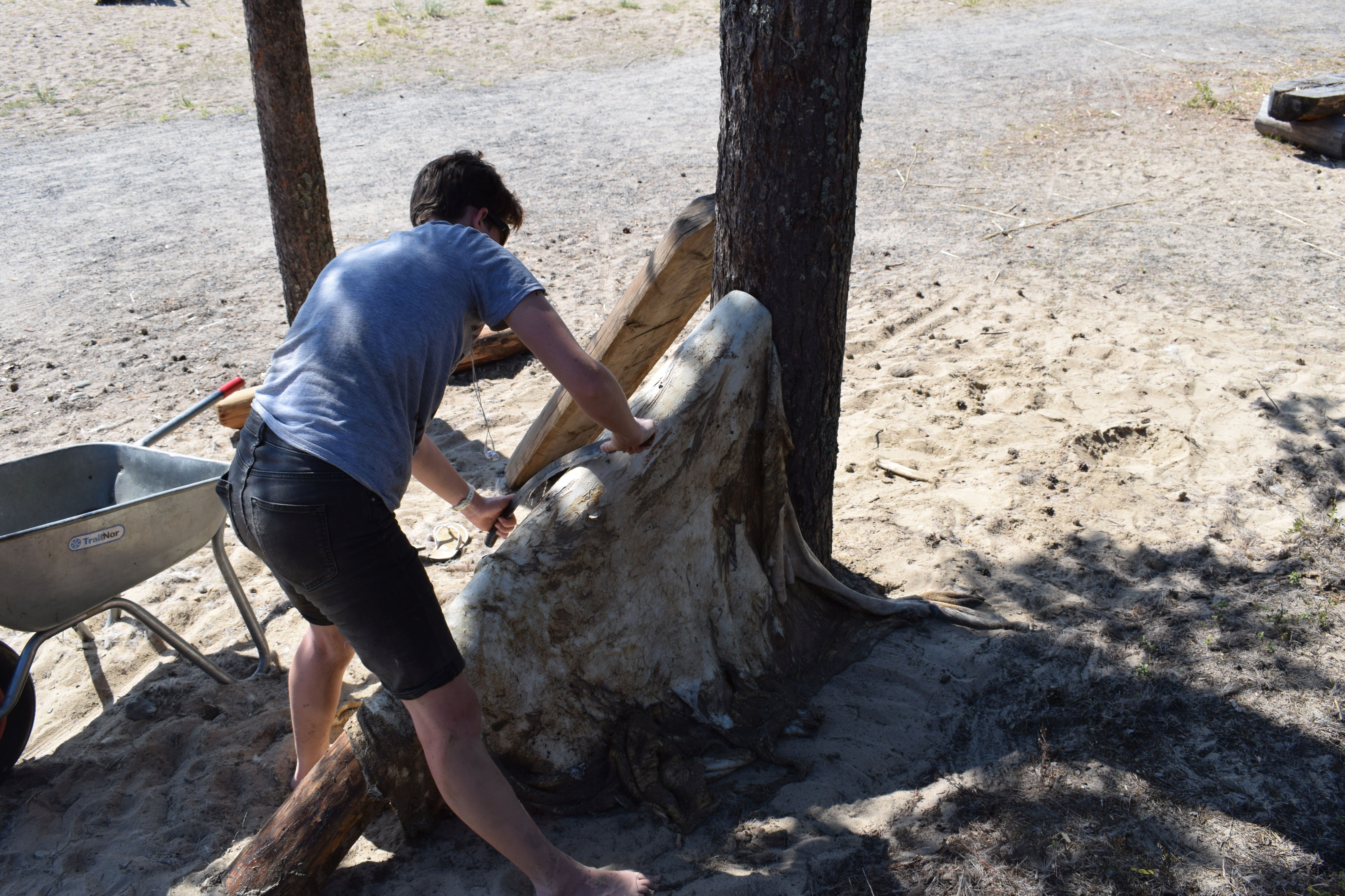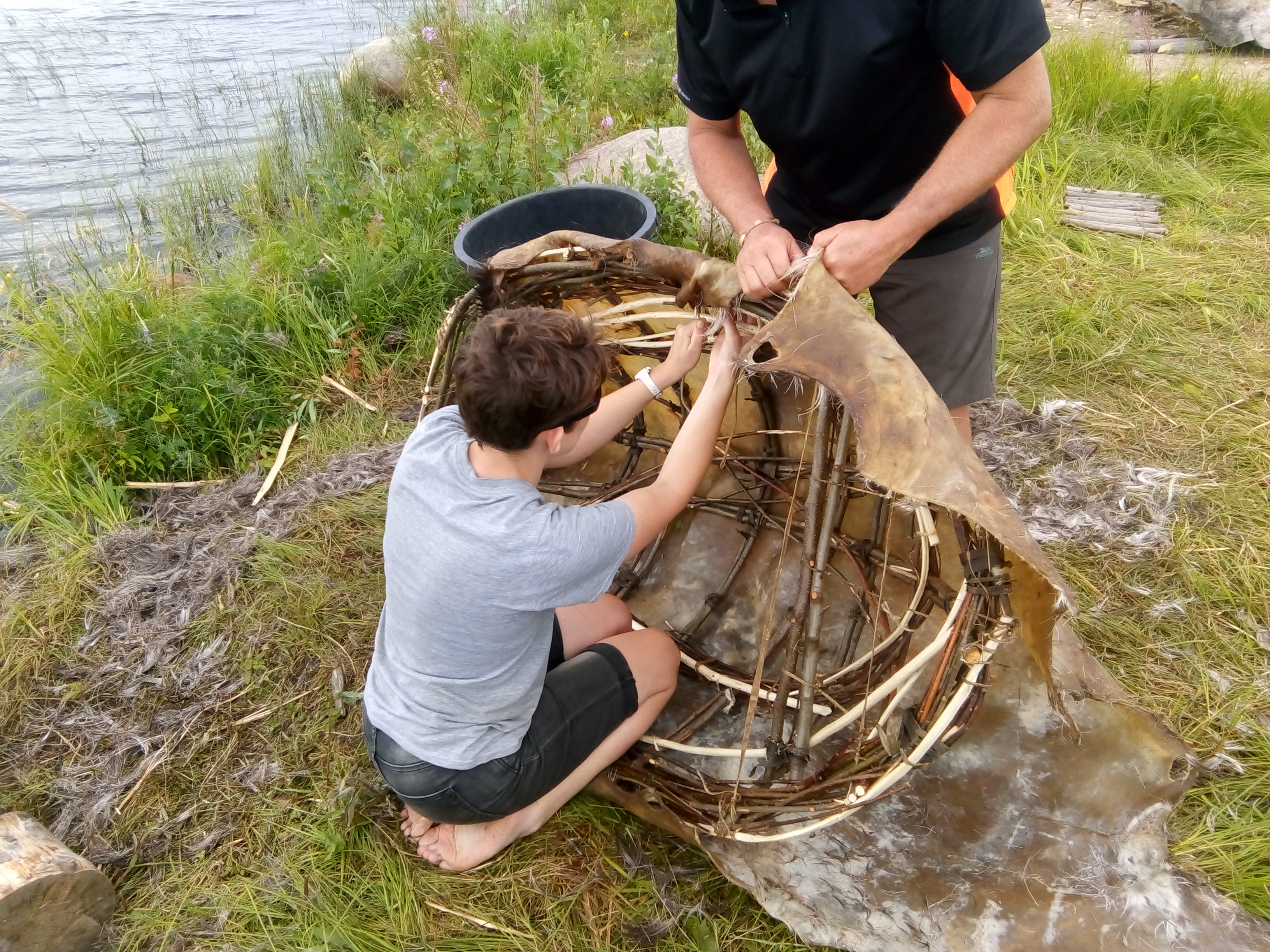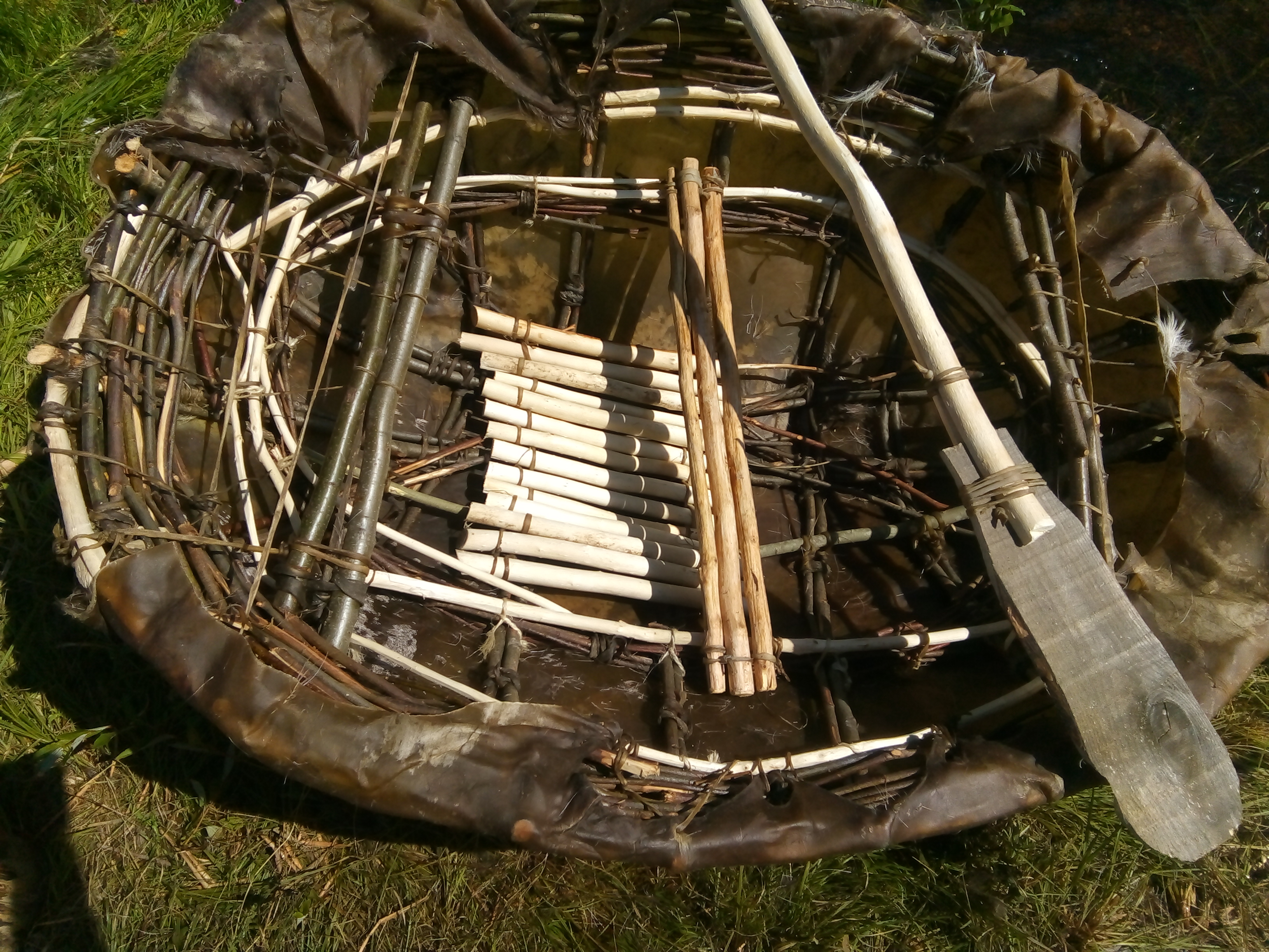 Due to the lightweight nature of the coracle, it was easy to work and meant that one section of gunwale could be laced at a time, while the opposite gunwale and hide could be submerged in the lake, retaining moisture and flexibility.