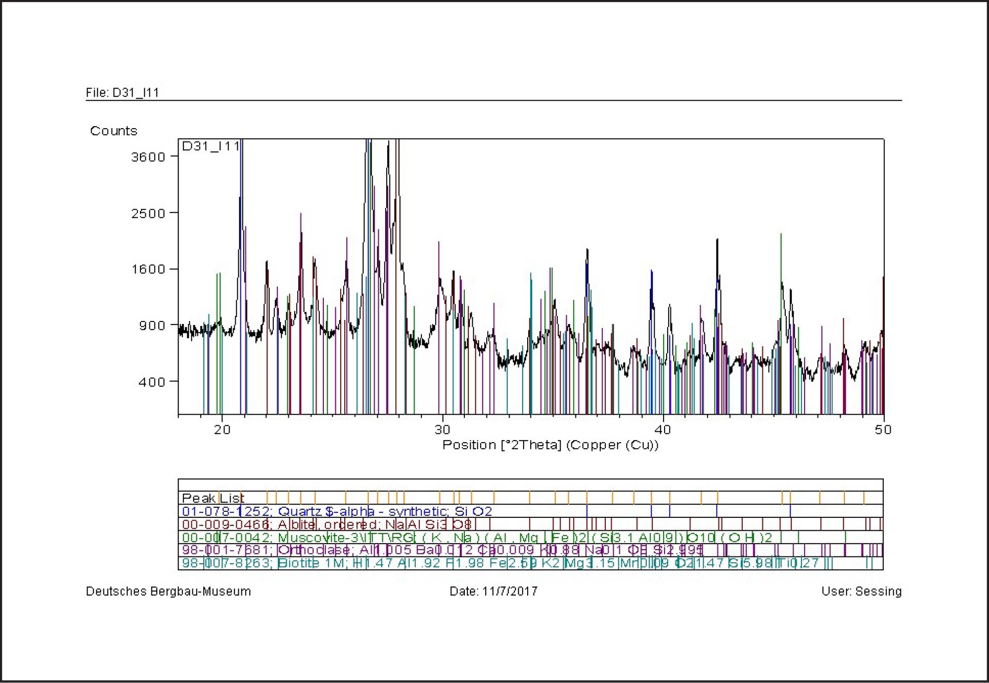 | The D0 sample is a granite composed of quartz, albite, muscovite and orthoclase and so is the D31 sample with an additional minor phase of biotite. | See Figures 36 and 37 |