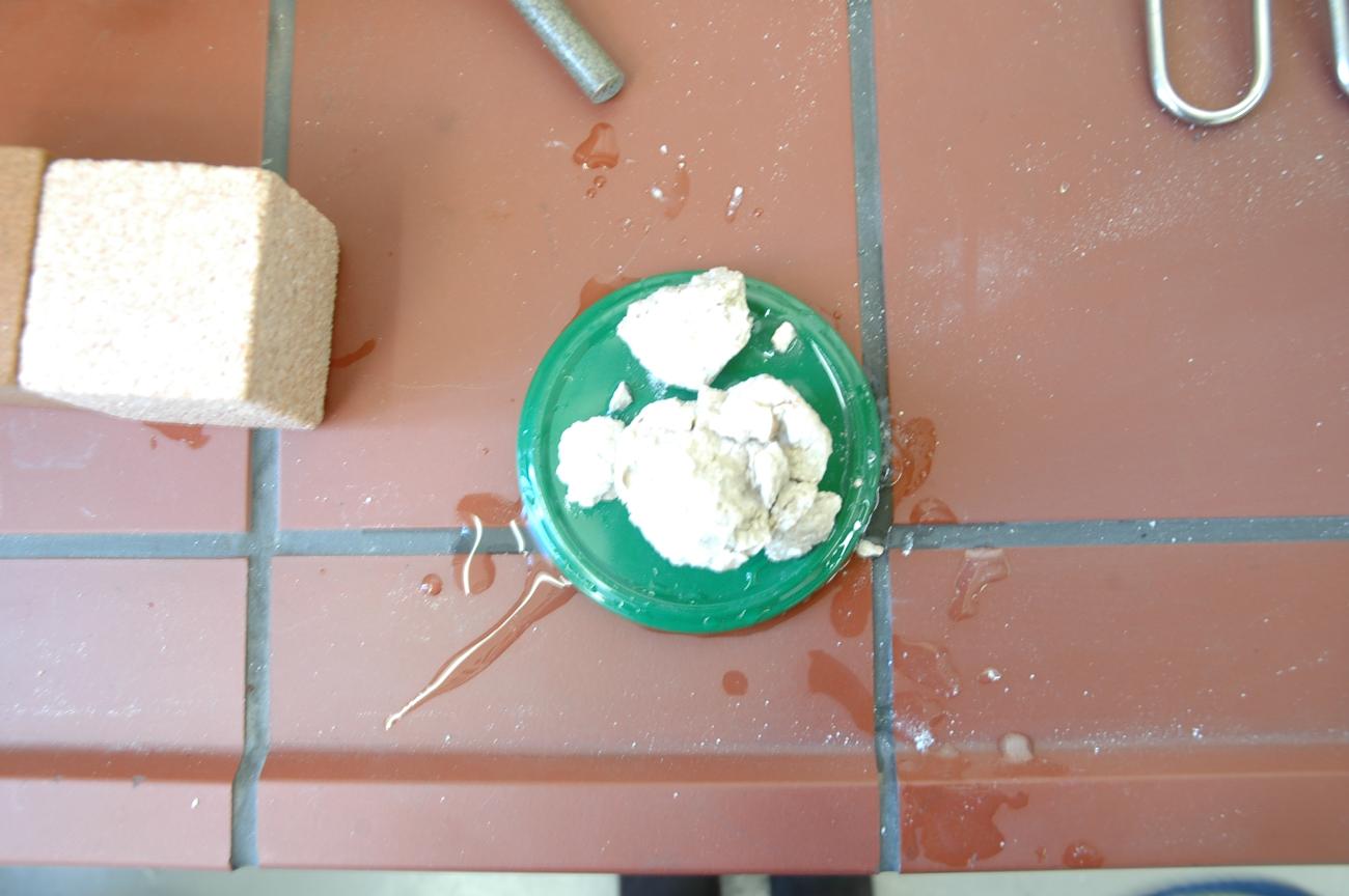 In the case of calcite it was impossible to cool the 1000°C block with vinegar because at 500°C the reaction between calcite and vinegar was extremely violent, resulting in an intense effervescency.