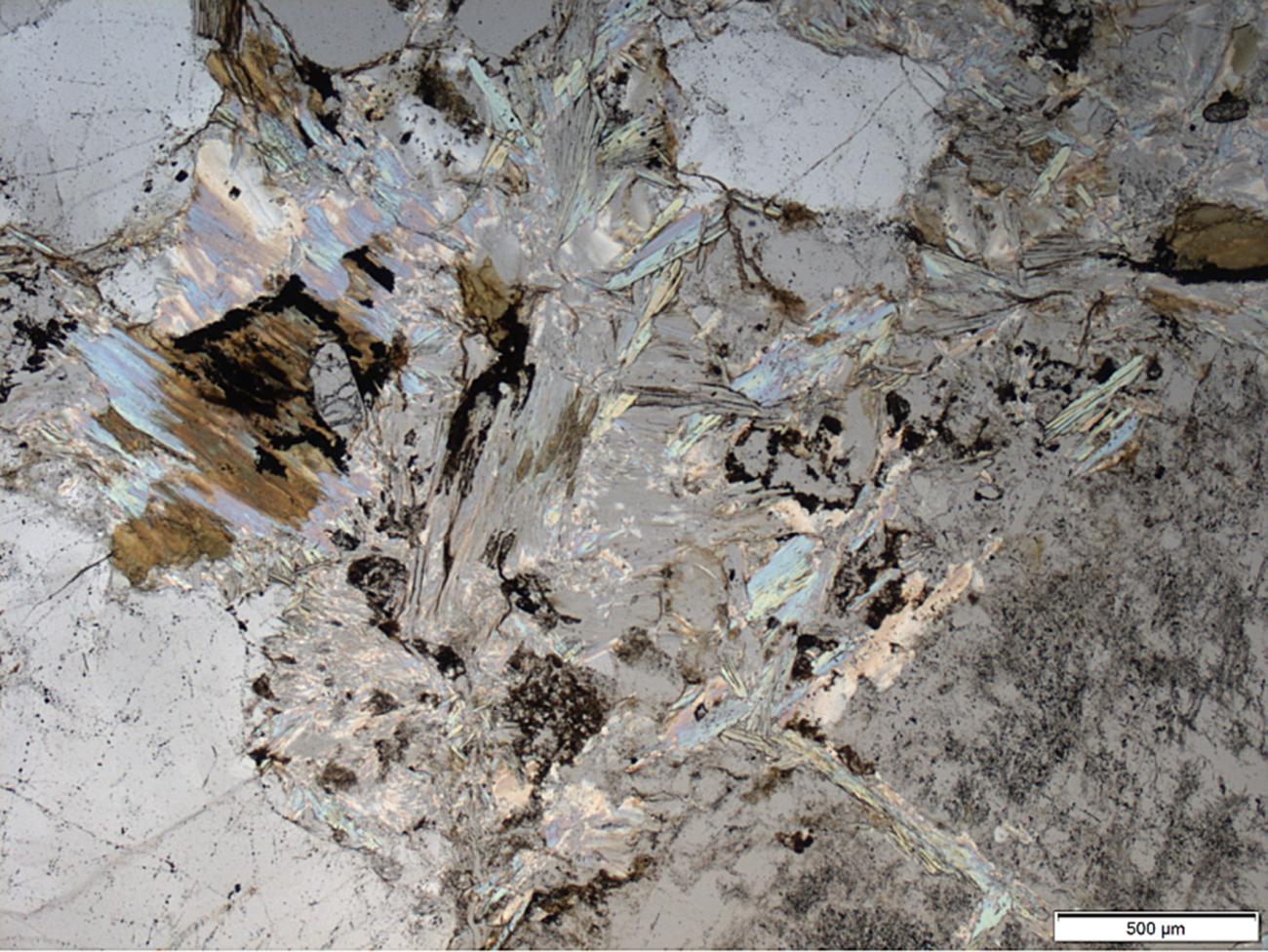 The images recorded by Dr. Stephen Merkel have supported the interpretation phase, by using the polarized and crossed polarized mode, to detect and recognize the mineral phases and the reactions occurring. Some changes were recognized in all the fire-set samples, such as darkening and increment of cracks (intra and intergranular, only in the schleriter these are less visible).