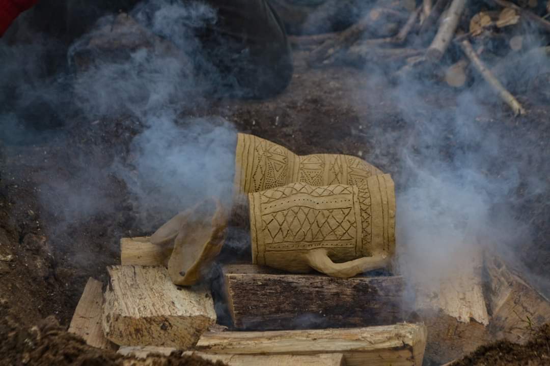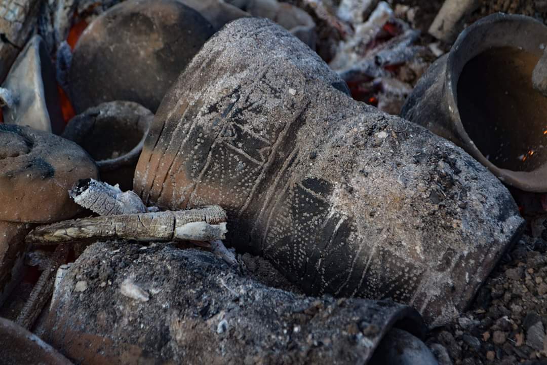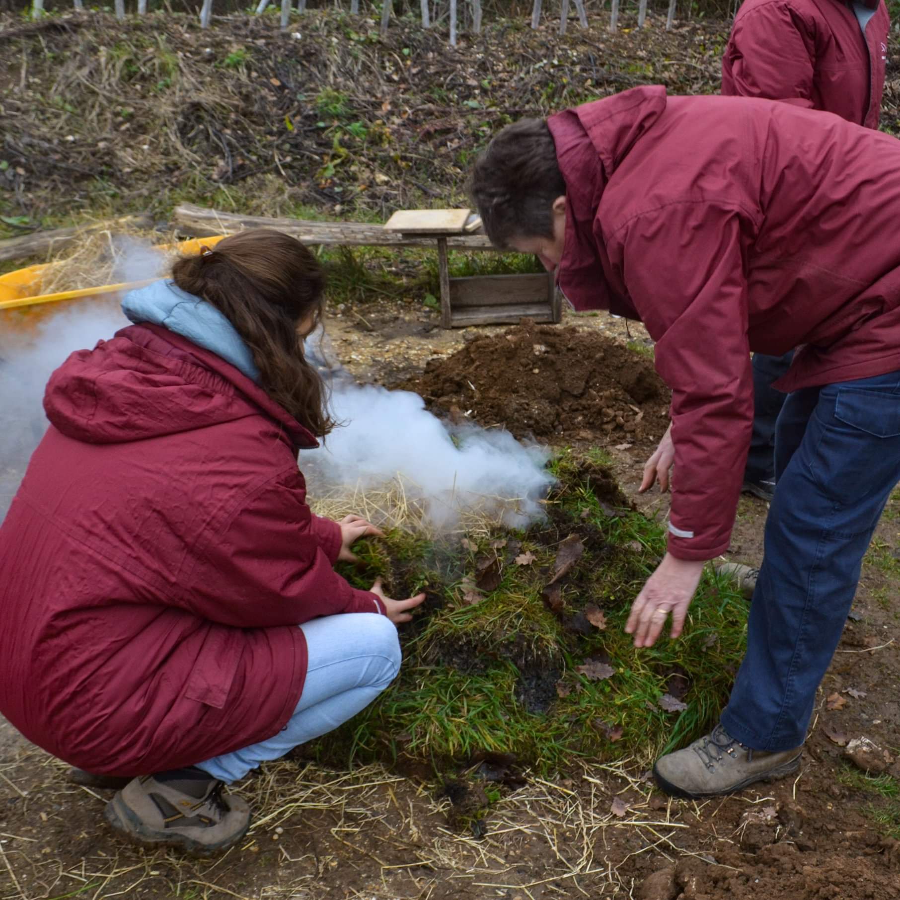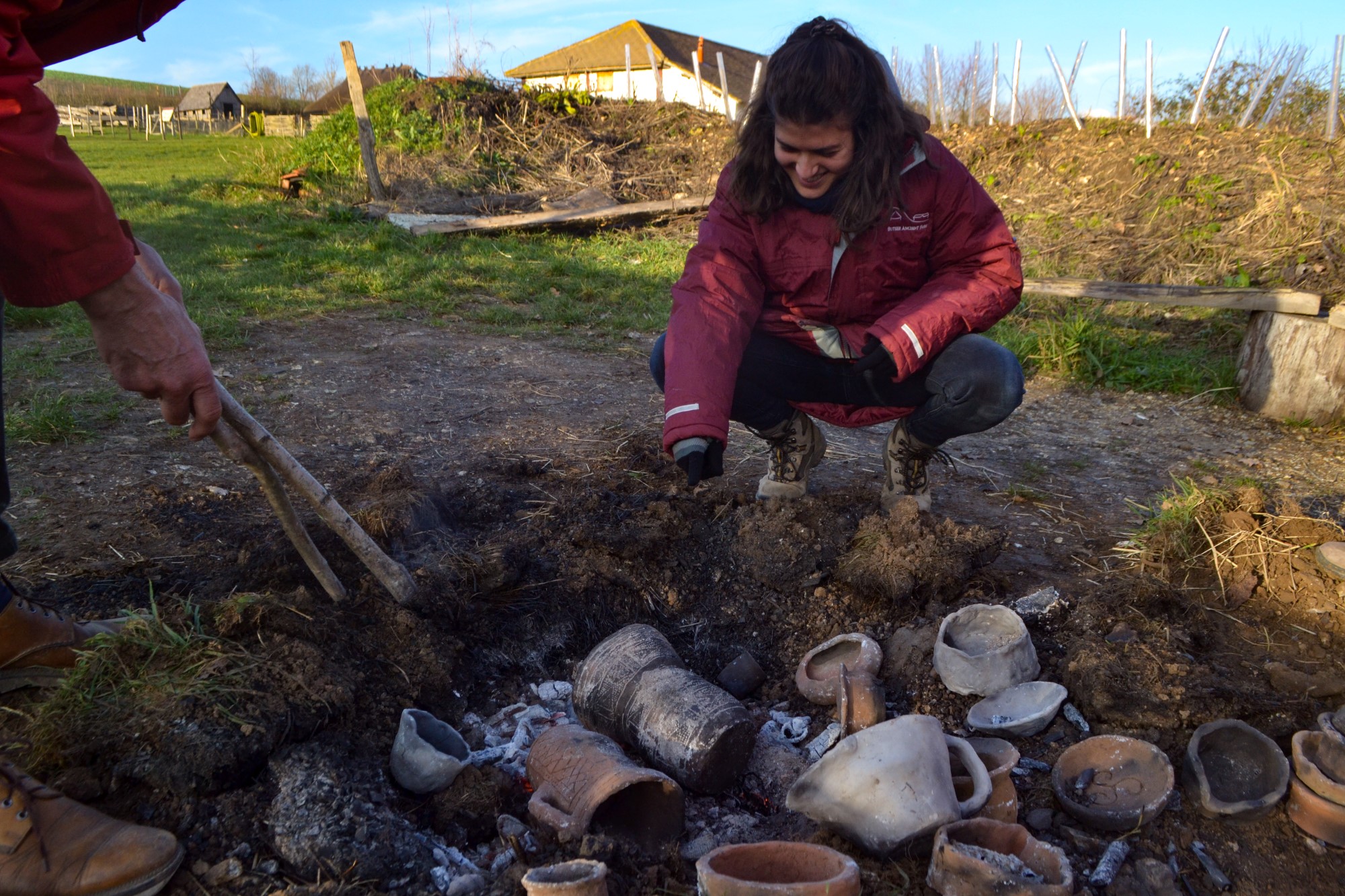 What has been the main difference between doing my internship at Butser Ancient Farm compared to another institution? My job has been varied, from feeding goats and painting the walls of the Roman villa, to meeting a Roman legion re-enactment group and designing a new stratigraphy sign (See Figure 4). All aspects contribute to the important work of Butser. Nevertheless, the experimental archaeology is another subject that we have to present as well. It is for this reason that, during my stay, I have seen how they built a new Anglo-Saxon house, how to forge a metal tool, and how to thatch the roofs of the round houses (See Figures 5 and 6). I have personally worked on two main projects. Firstly, I have been following how the hypocaust of our villa worked over the period of two weeks, to see if we could feel any temperature difference inside the building, and thus formulate conclusions to affirm previous or create new hypotheses. Secondly, I created different clay pots for an activity based in the Bronze Age period. We decided to fire in an experimental fire, using a technique called ‘Pit Clamp Firing’. Through this experiment, we wanted to assess the resistance of the clay we were using, and to learn if the way we made the pots had been right (See Figure 7).