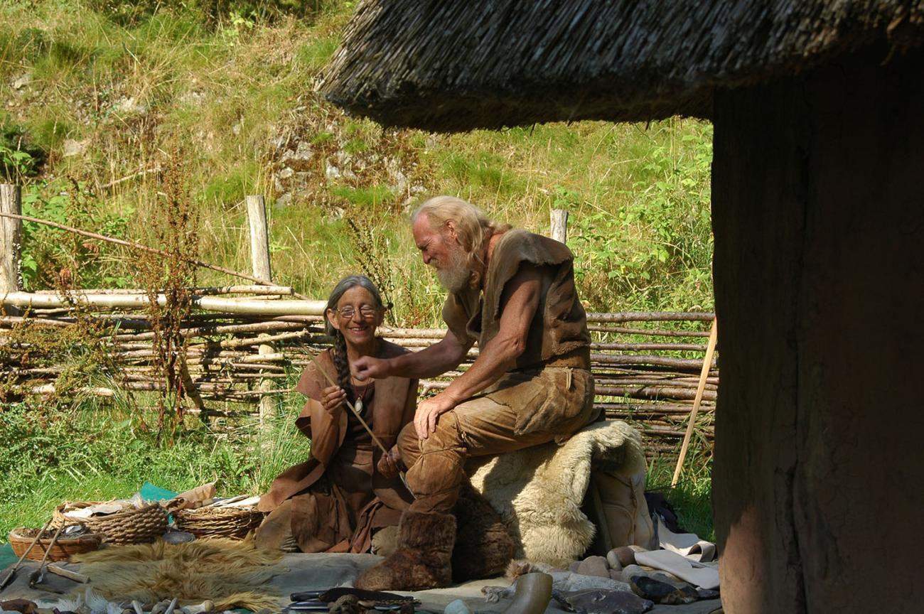 During their time as custodians at Grimes Graves, until the late 1980’s, both John and Val mastered the art of flintknapping, and John left Grimes Graves in 1988 to become a professional flintknapper working in the construction industry. By 1992, both Val and John decided to combine their technologies: as well as supplying the construction industry with flint, they began many journeys together, travelling around the UK to deliver and demonstrate primitive technological skills to the wider public. Favourite places to visit were Kilmartin Museum in Argyll and Creswell Crags, Nottinghamshire.
