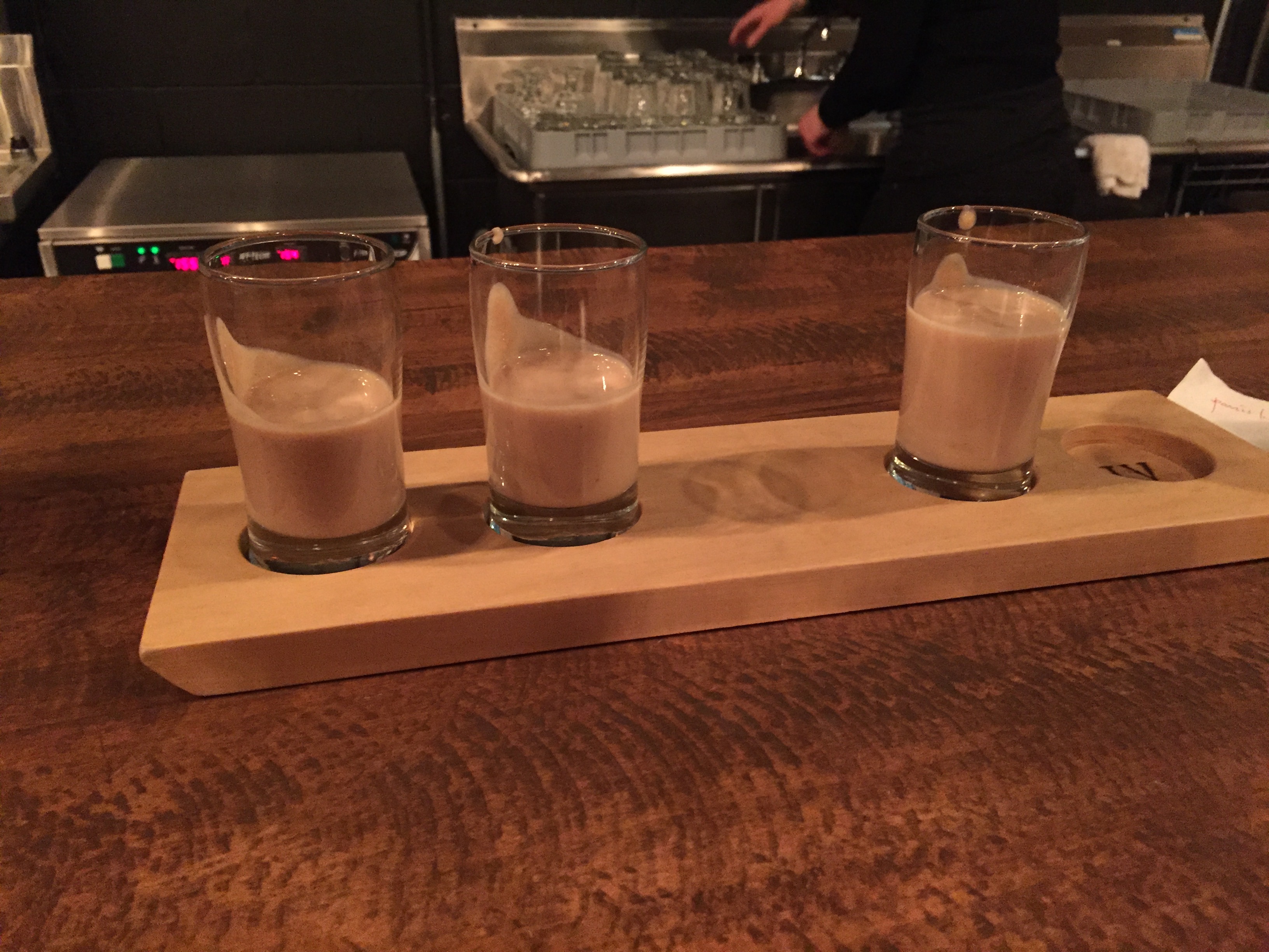 Second, appearance. To begin with the beer: Did this beer really look like a sourdough milkshake when it was produced 1800 years ago? The general feeling is that the clear and crisp beer is a modern ideal; it is worth bearing in mind that several modern commercial and craft beers—wheat beers, for example—are cloudy. We did test this aspect briefly in Barn Hammer’s taproom: some customers were put off by the appearance alone, but others certainly were not. The mulsum looked like a viscous red wine, almost certainly due to the additional honey and sugar content.