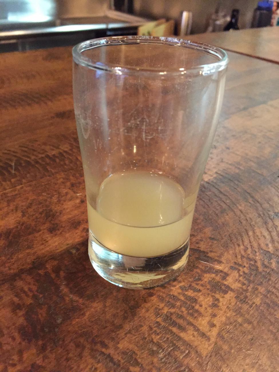 The solution was left to ferment for ten days, and then to mature for a further 11 days; three weeks in all. Initial examination of the beer was made after this time: the beer was full-bodied and thick (See Figure 4). An additional four days resulted in further settling, and—given the problems with sourcing clay amphorae—the beer was transferred into six glass jugs (each 1.89 litres in capacity). Examination of the beer at this point revealed a clearer solution, although still cloudy (See Figure 5).
