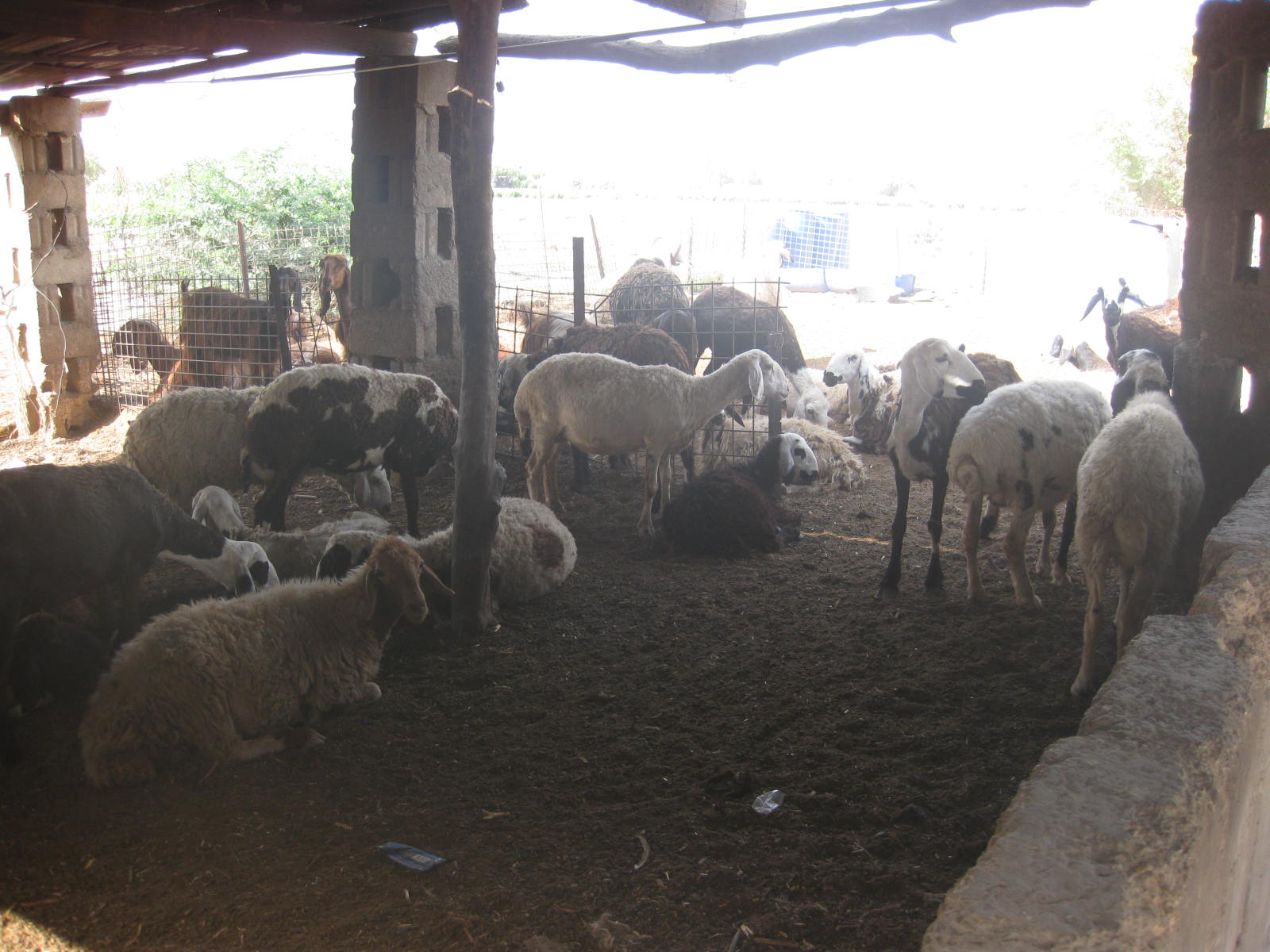 In preparation for cooking bread or meals, the oven is heated overnight with slabs of sheep dung set around the exterior. Upon our arrival, the women demonstrated baking bread in a clay oven (See Figure 10) and we discussed the characteristics of the best sheep dung for high performing fuel. According to the women sheep dung is best when gathered where the sheep are enclosed, as in the compound of Um Hamid Dalal (See Figure 11). There sheep dung is urinated on and trampled so the dung no longer remains in the original form of small round pellets. When sheep dung is compacted this way it can be gathered in large pieces then broken into smaller more manageable shapes (5 cm x 10 cm), The women store large supplies of this processed sheep dung (See Figure 12).