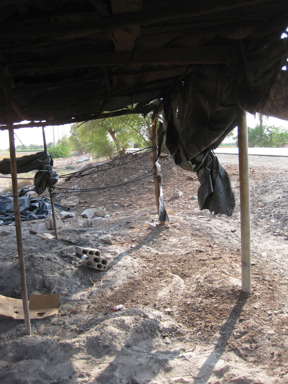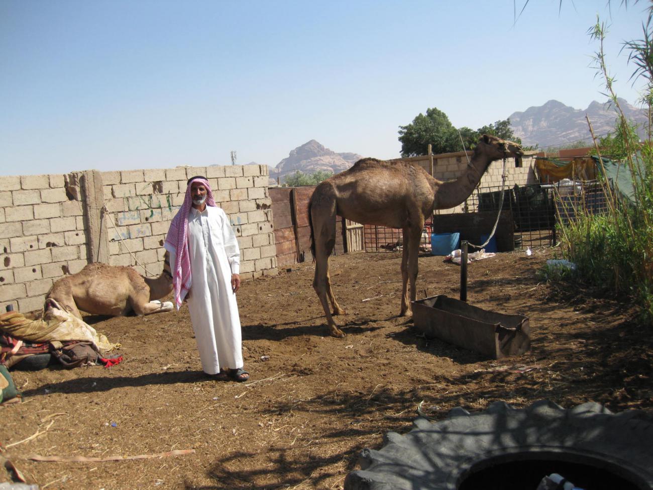 To insure we received the best camel dung for our remaining firings, Bedouin Mifleh was recommended to us. We travelled to Al Twasi, a village south of the Bedouin center Ad Desi in Wadi Rum. At Miflehâs compound (See Figure 3) he showed us his new baby camel (See Figure 4) and brought out bags of dung. We examined and appreciated the best quality dung he gathered for us and paid for two shawl.
