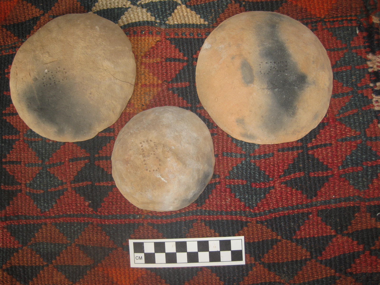 A significant influence on vessel color was placement in the setting, whether mouth up or down, as they came in contact with dung fuel. When dung settled inside a vessel there was a black patch within the vessel caused by a reduced atmosphere. Vessels placed mouth down showed black patches on the outside.