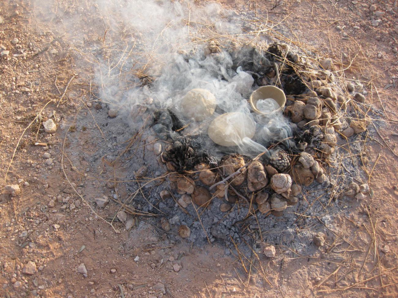 We submitted ash samples from several camel and sheep dung firings to Dr. Alexia Smith, University of Connecticut, for a study collection and for macro-botanical characterization to compare with ash from archaeological sites.