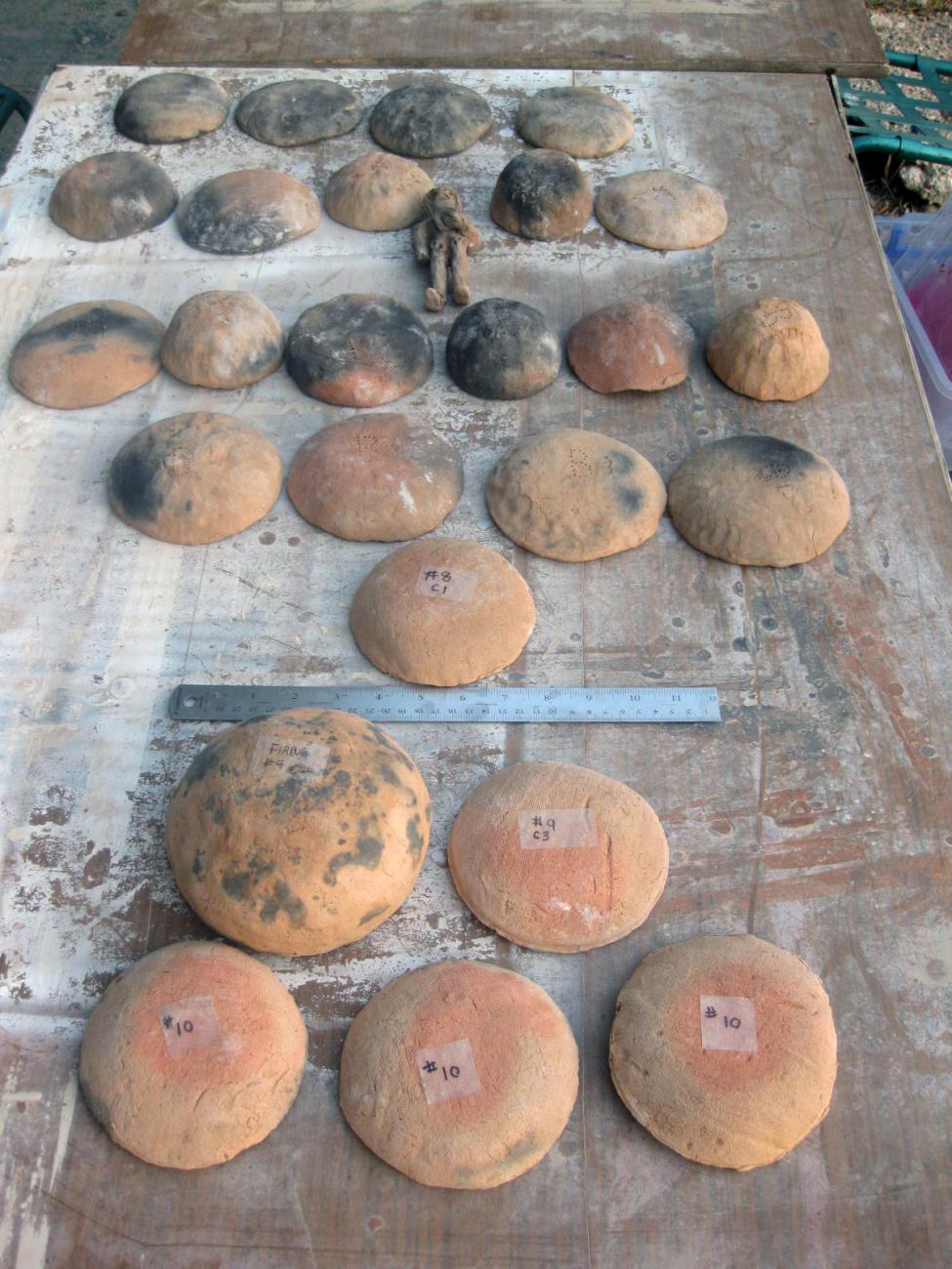 Furthermore, when recovered at an archaeological site, a large ashy domestic heath surrounded with burned earth and no wasters (i.e. pottery damaged in firing) may indicate house-hold pottery manufacture with dung fuel. However, the results of color and hardness tests on pottery from this series of firings present no unusual evidence that would point to dung fueled bonfirings.
