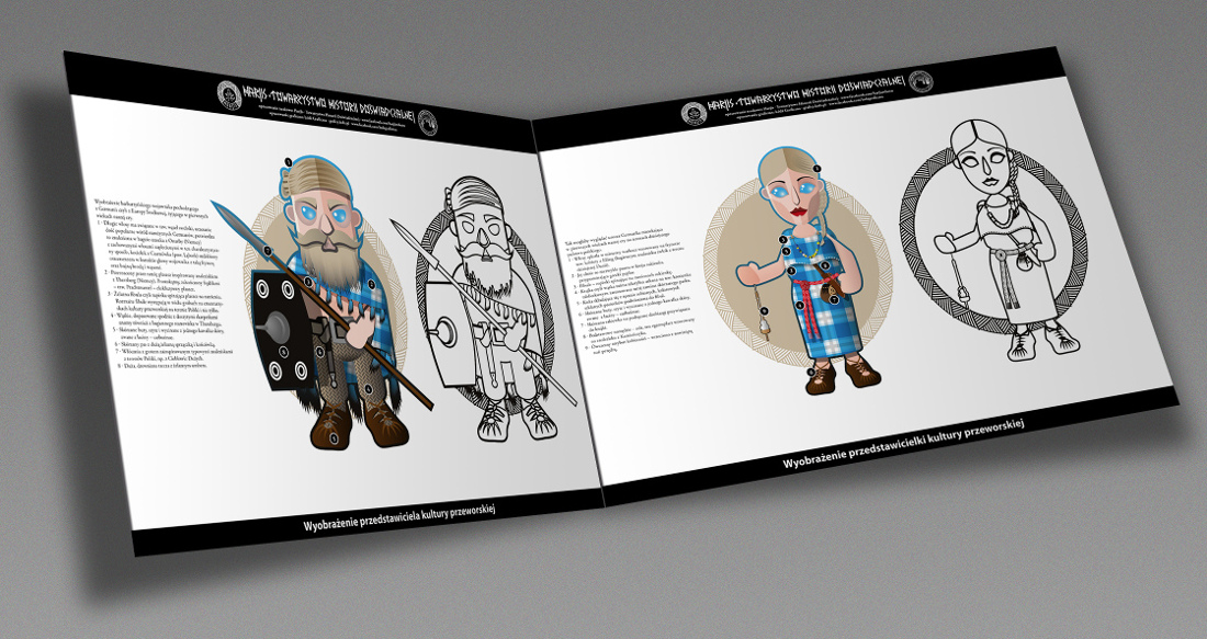 To make the image of our website more attractive, we have started cooperation with the graphic company Łódź Graficzna. Thanks to this cooperation a series of colouring books was created - educational materials for children that illustrate the appearance of ‘Barbarians’ of first centuries AD Poland.
