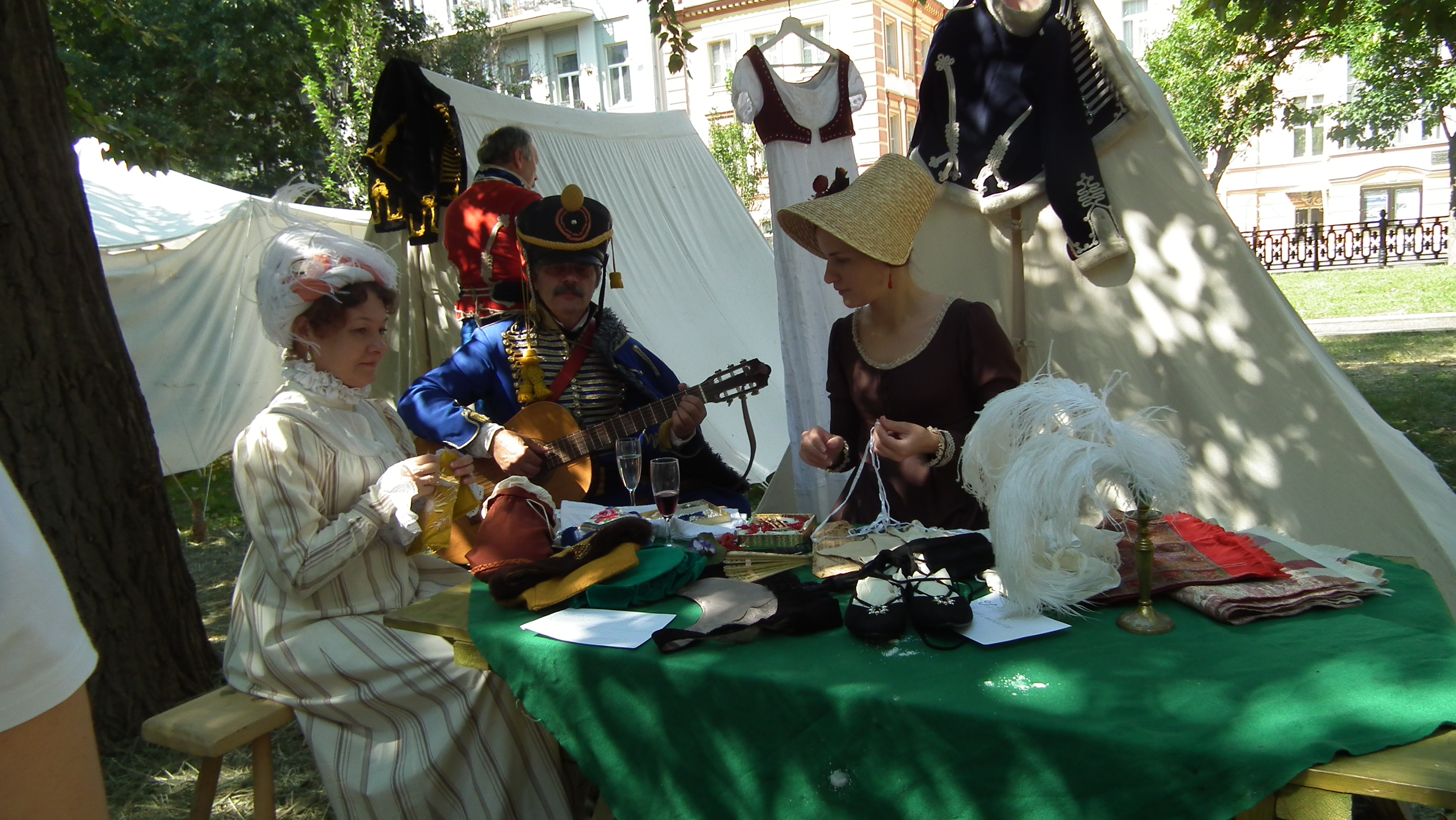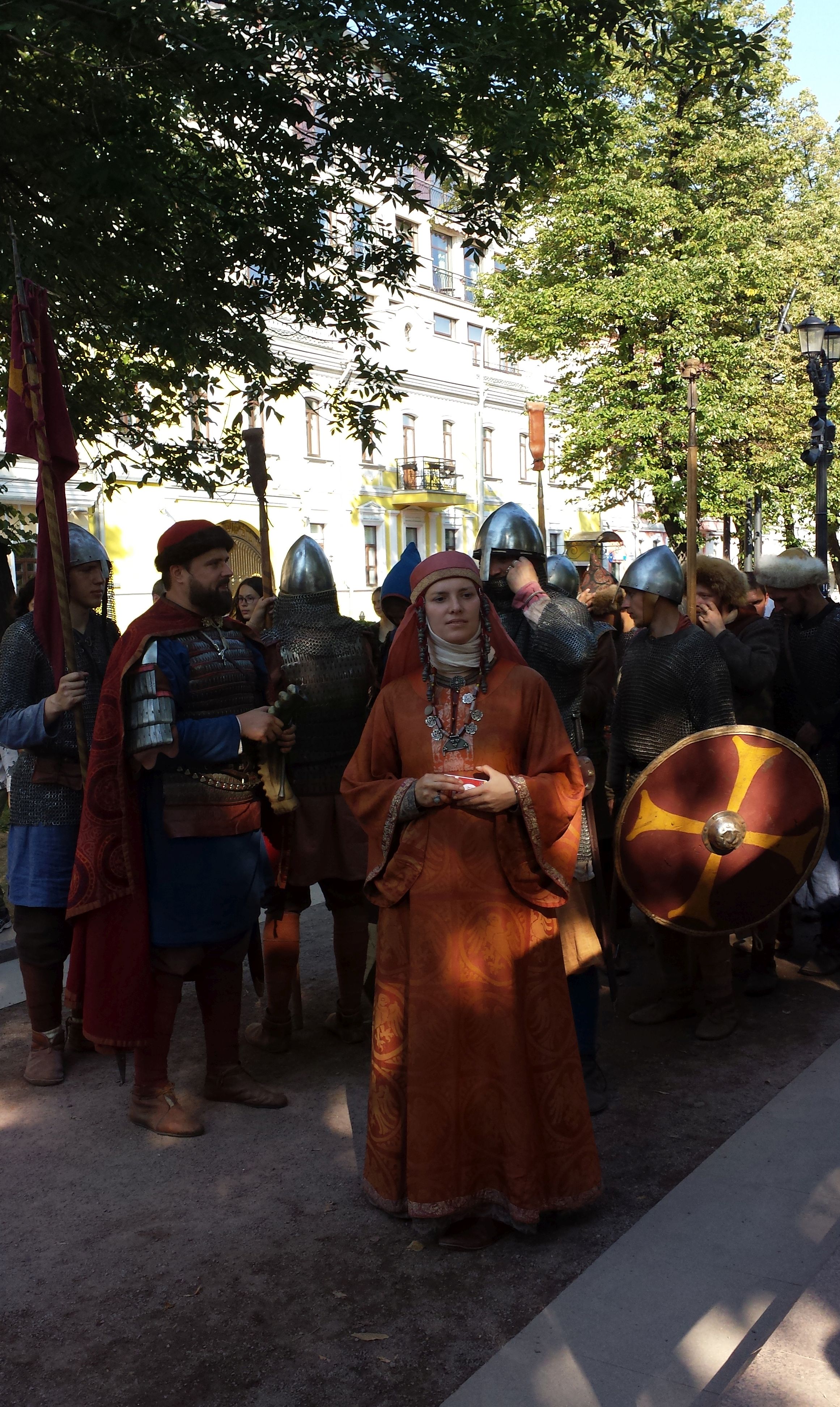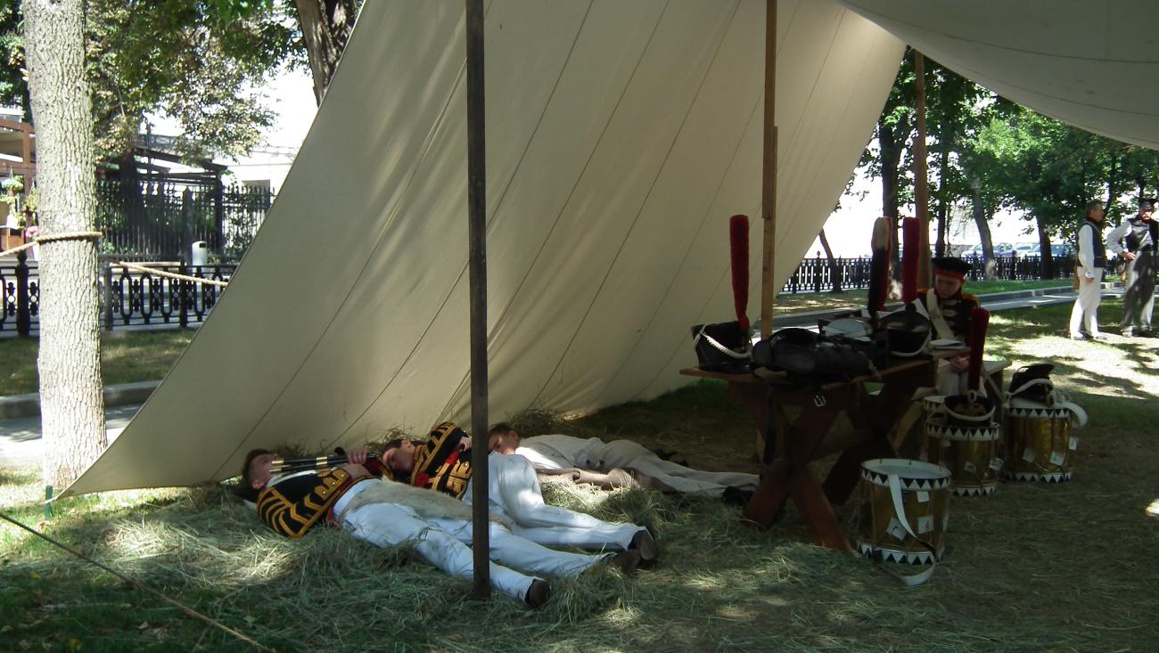 In August 2018, members of EXARC participated in Moscow’s Times and Epochs Festival for the third year. The annual festival is held on park boulevards that surround the inner city, providing an ideal green space for reenactors to recreate various periods of Russia’s history. The main sites were located in Tverskaya Square, Nikitsky, Passion and Tver Boulevards, on Kamergersky Lane and Profsoyuznaya Street. The festival was spread over 10 kilometres with over 30 locations, hosting over 200 reenactors coming from various European and Asiatic countries. The periods recreated ranged from the Palaeolithic to the 20th century. There were impressive army encampments from the Napoleonic Wars, a Viking village, and medieval Muscovites. The festival also hosts a contest in which the presenters of a winning proposal receives one million roubles to implement their historical project.