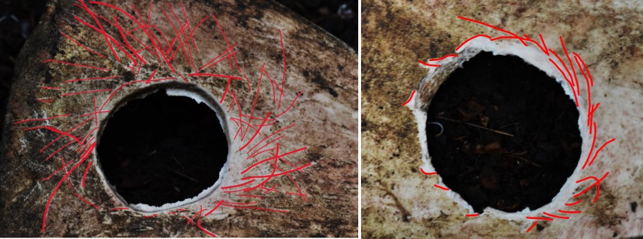 The experimental data produced suggests that whilst technically possible, the compass method is the least likely to have been used archaeologically. This method was cumbersome to execute, resulting in greater time taken in producing each rondelle, and with frequent breaking of the string compounding this, as well as limiting the control over the rondelle size produced, resulting in a minimum diameter. Conversely, it created greater control over the execution of the engraved lines, producing highly regular circles with greater ability to achieve a centralised hole, albeit marginal to that which can be produced by eye with the freehand method. If the manufacture marks visible on the Grotte de Saint-Michel dâArudy are representative of how most bone rondelles were produced, then it is highly unlikely that a stencil was used as this method does not produce the same overshoot cut marks, best described as looking like âCatherine Wheelsâ, when carving out the circular disc form.