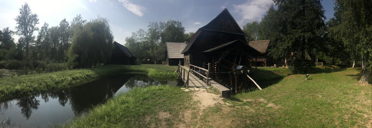 The afternoon was taken up by a visit to Opole Village Museum, finally ending the day at the Milling Museum in Osieczna. Opole Village Museum is a traditional open air museum with over forty folk buildings from mainly the 19th century and reconstructed to the inter-war period, when this part of Poland was part of Germany. Here we were welcomed by Jaroslaw Gałęza, AEOM board member and head of the museum. Jaroslaw showed us the many rural farmsteads, working buildings, a smithy, a watermill, (See Figure 4) and a spectacular church dating to 1613. We were given a very warm welcome by the managers at the Milling Museum of Osieczna.