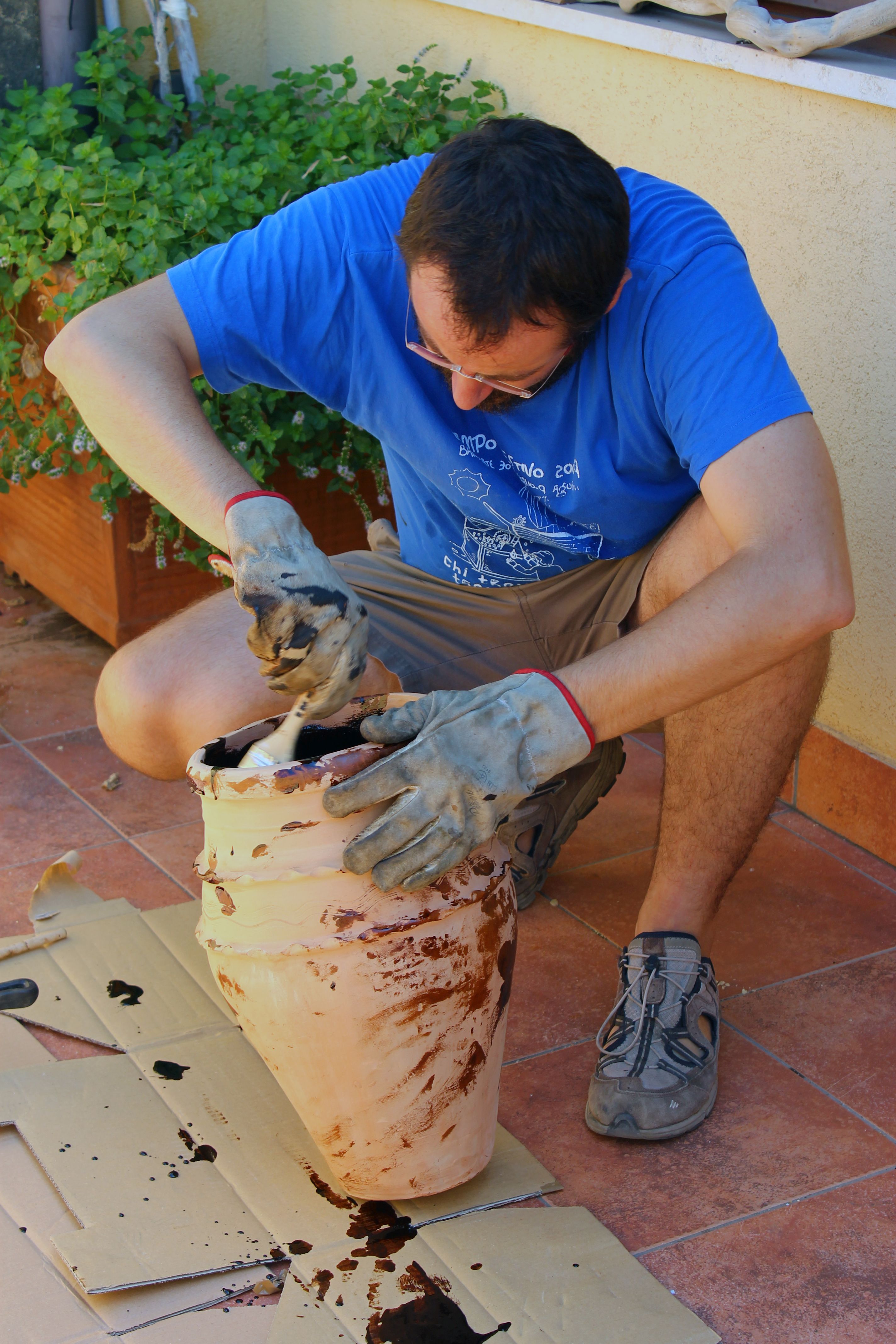 After coating, and a few hours before the harvest, in September 2017, the vessels were washed with sea water and sprinkled inside with ash (as suggested by Pliny, Nat. Hist., 14.134). Then, we proceeded to harvest the grapes from the experimental vineyard; approximately 80 kg of grapes were harvested, of different varieties with white and mainly red grapes (about 80% of the total).