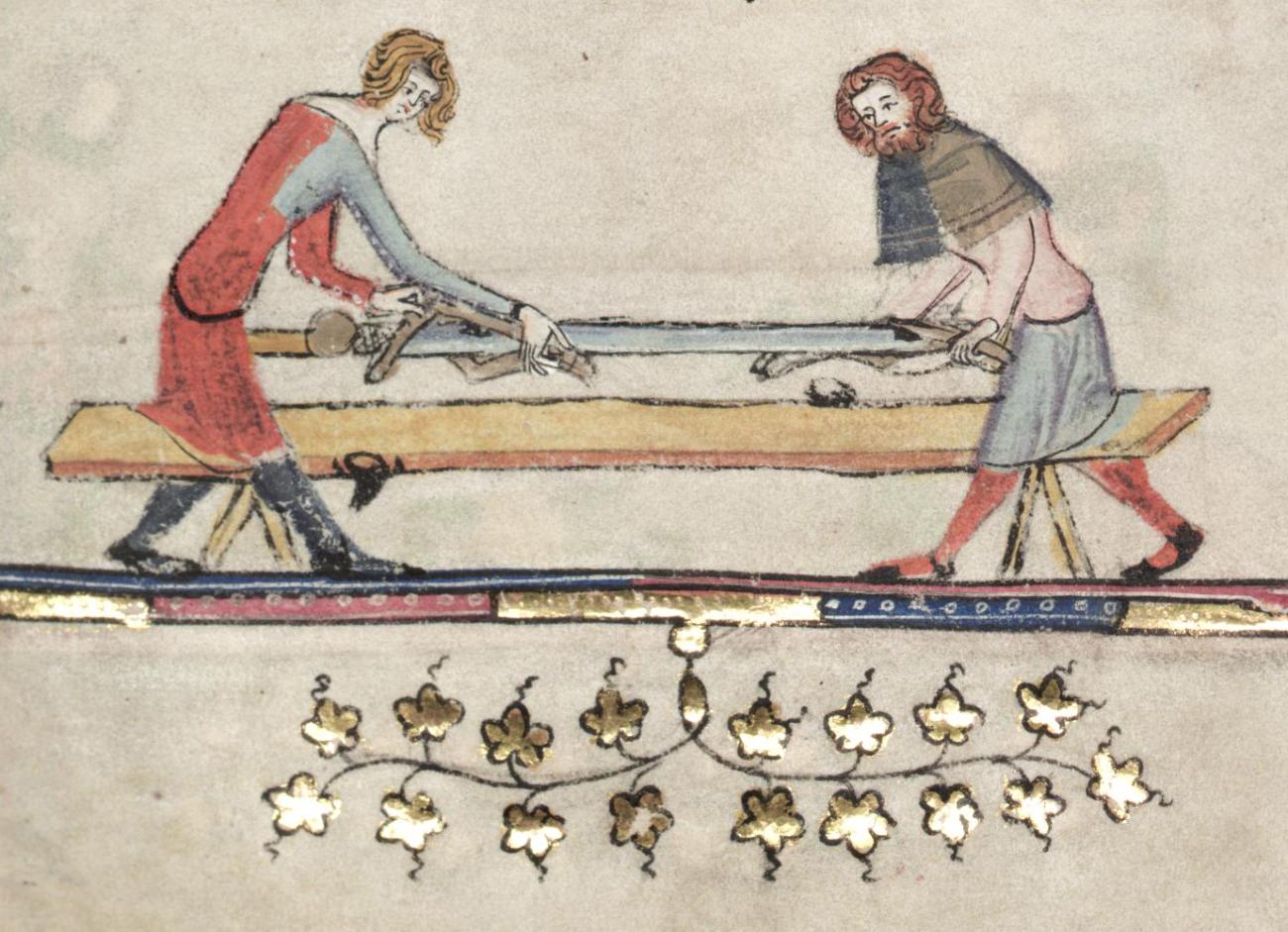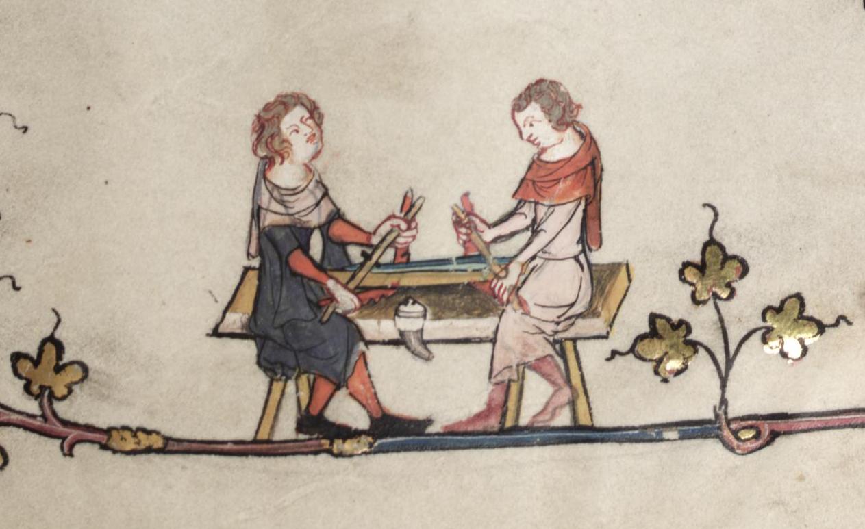 Fig 2. Polishing bench in the Eadwine Psalter. Detail of Eadwine Psalter, 1150, fol. 108v. Picture under Public Domain: https://commons.wikimedia.org/wiki/File:Illustration_from_Eadwine_Psalt…