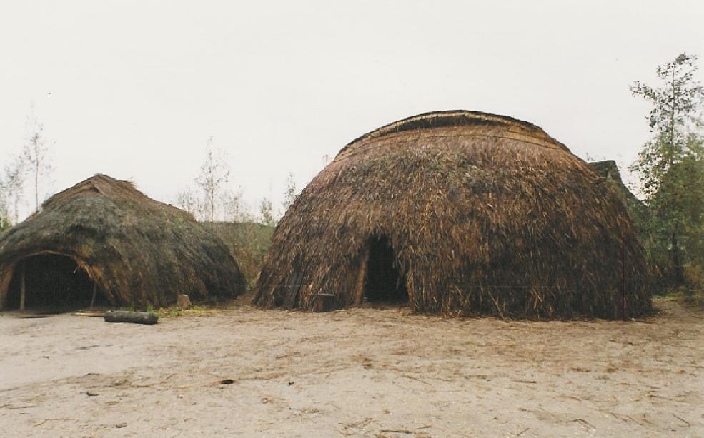 Besides the huts of the Living Experiment, the builders of the first huts at Archeon had gathered information about two more models: two reconstructions from ArchƤologisches Freilichtmuseum Oerlinghausen (DE) and one built by students from the BAI. Both are discussed in an archival document from Archeon, in which they feature as sources of inspiration on how to build the huts at the new theme-park to be (Geerlink, 1990). The basis of the Oerlinghausen reconstructions is a controversial excavation from the early 1930s at Retlager Quellen (Banghard, 2007). These reconstructions are far smaller than the huts at Archeon (2.30 x 1.50 x 1.70 m), yet the branches that would form the arches were in a similar way pushed into the soil. Over time, various materials have been used to cover the skeleton, such as hides, birch bark and common couch (Agropyrum repens).