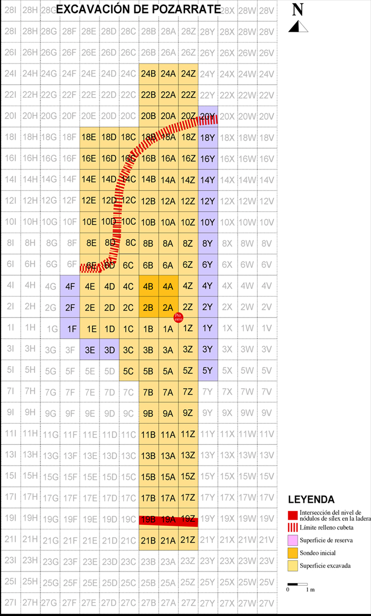 Since 2011, different works at Sierra de Araico were developed to understand and delimit the mining area. The principal raw material is Treviño flint. It’s a frequent type of flint usually detected in many archaeological sites of the Cantabrian region (from Asturias to the Basque Country, Spain), the Western Pyrenees and the south of Aquitanian Basin (France), from the upper Pleistocene to the Holocene.