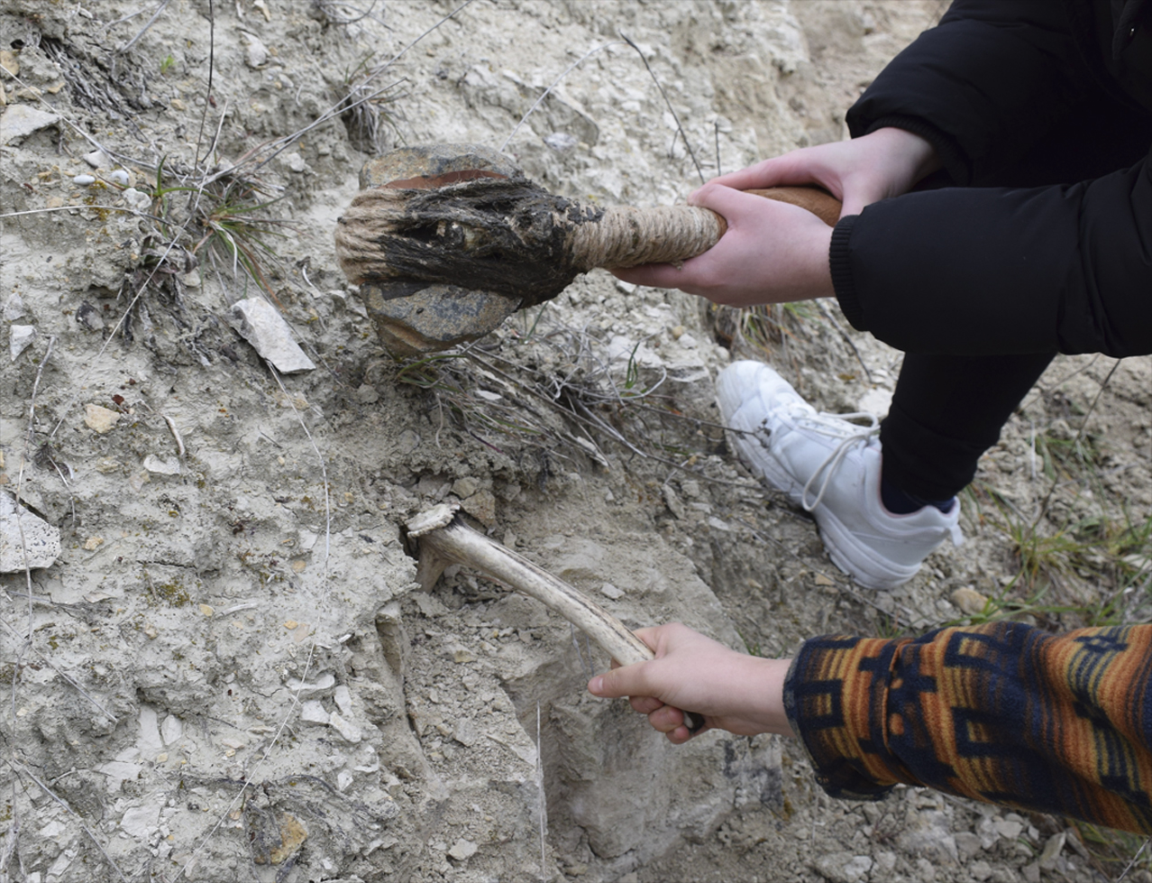 The experiment was carried out during the first quarter of 2019, involving 12 people. The comprehensive technological management of dolerites and their hafting took seven hours. The field experiment took two hours. The successful use of experimental hammer stones allows us to affirm that the mechanical extraction of flint is possible, and the use-wear generated will be used for their comparison with those from the archaeological samples, in order to determine their use and function.
