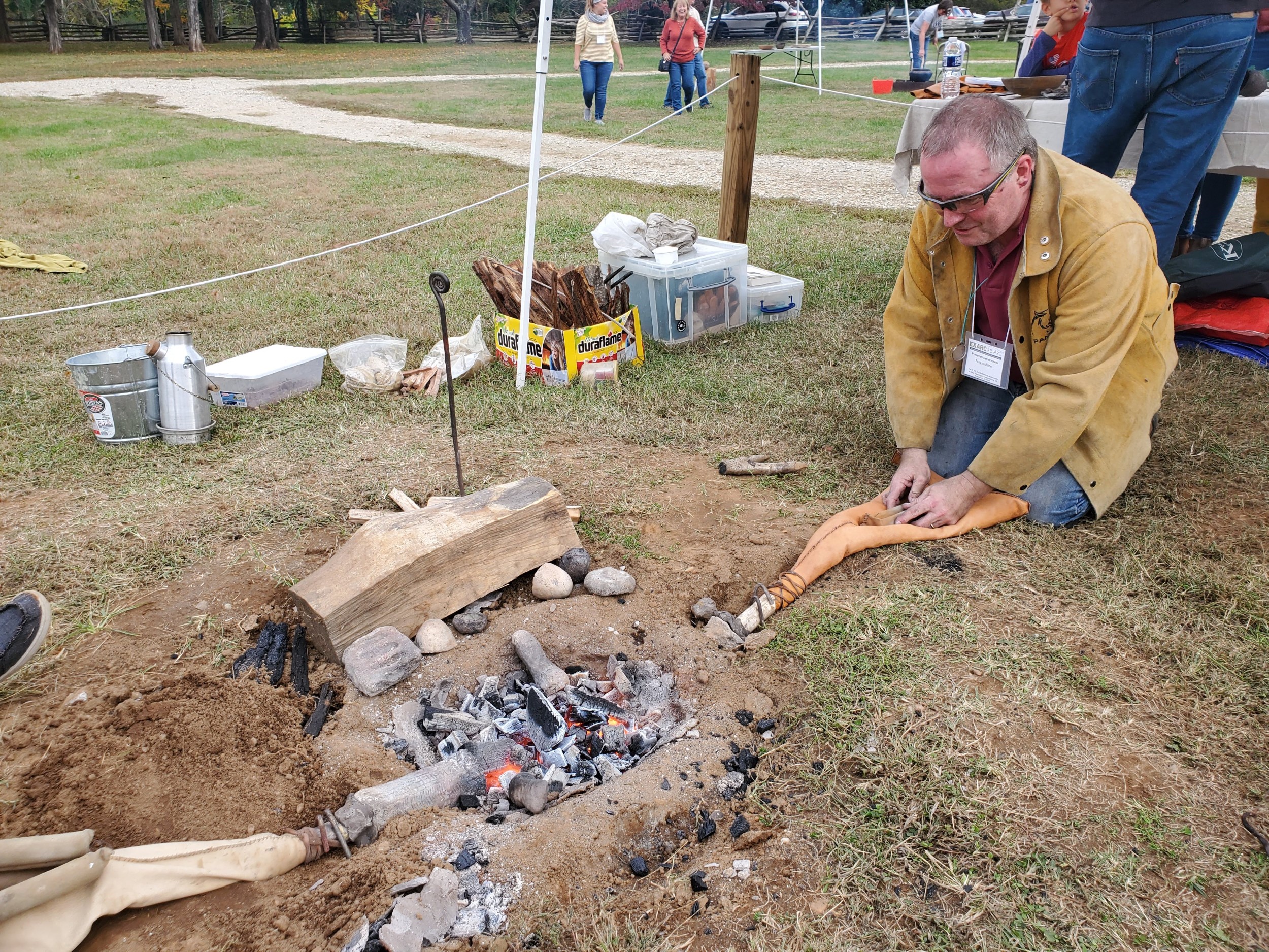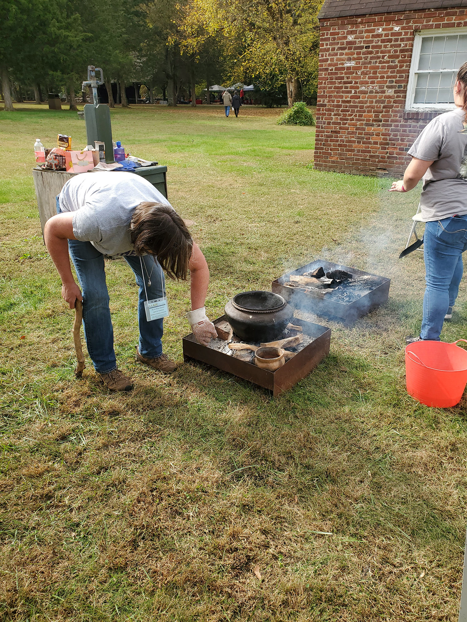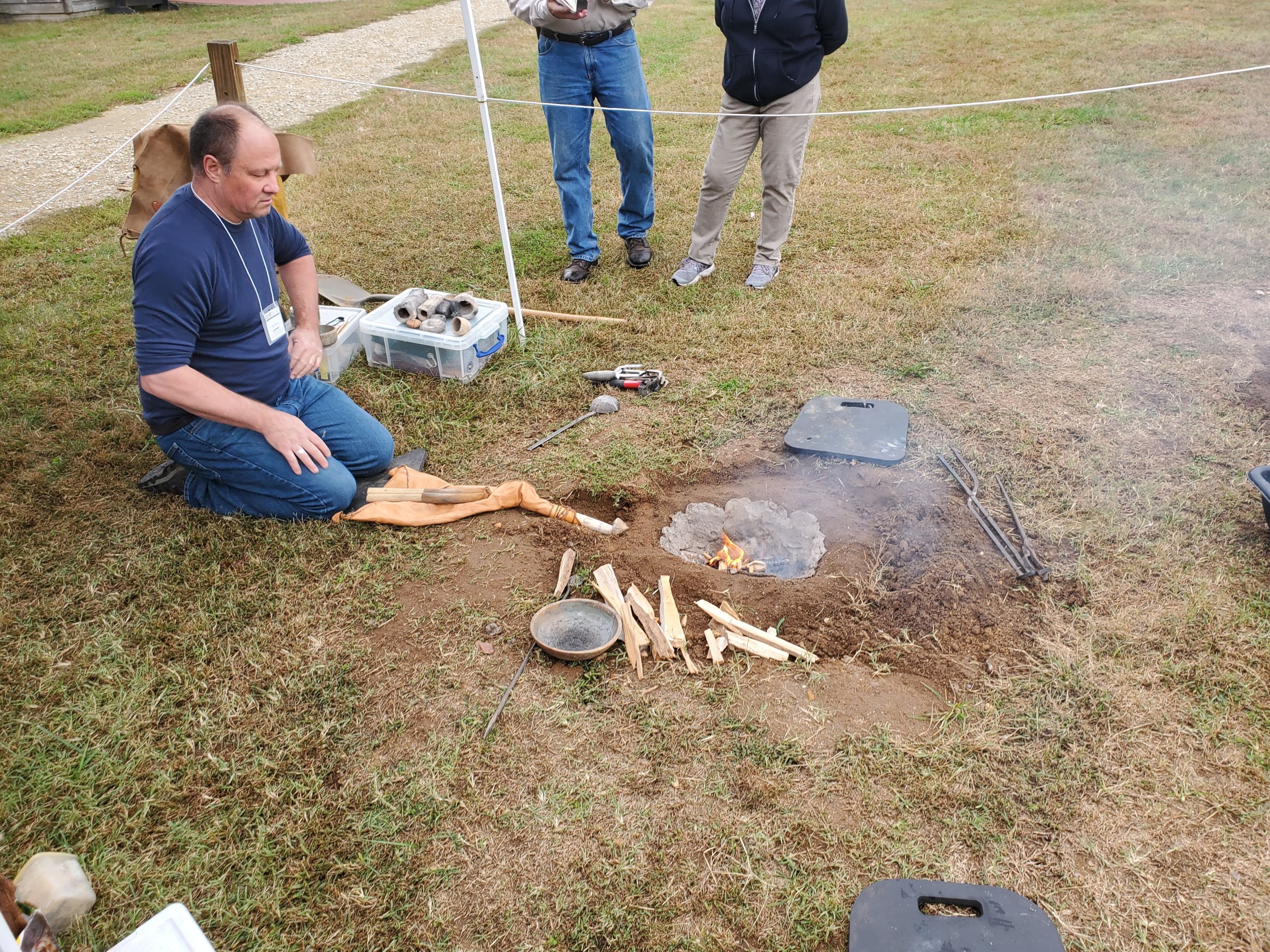 Day two of the conference offered up an opportunity for the public to experience what is at the core of experimental archaeology and to see some of experiments put into action. The demonstrations were held at George Washington’s childhood home of Ferry Farm. The native Patawomeck Nation was present to give an example of indigenous skills and lifeways, and other demonstrations included bronze casting, Viking age glass beads, bow drill fires, flint knapping, the nixtamalization of corn kernels, and an atlatl competition.